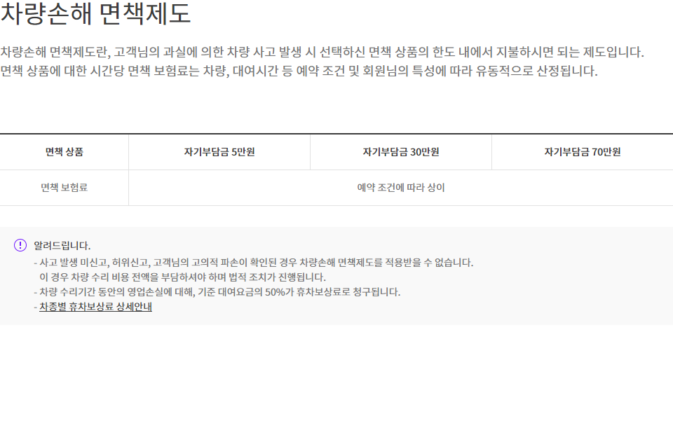종종 차를 빌릴때마다 자기부담금 5만원 짜리를 넣어서 빌리곤 해요.