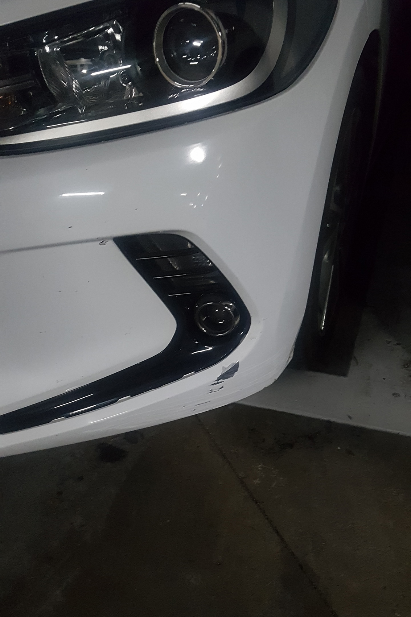 시골 마을 길에서 차를 돌리다가 범퍼 쪽을 긁었어요.