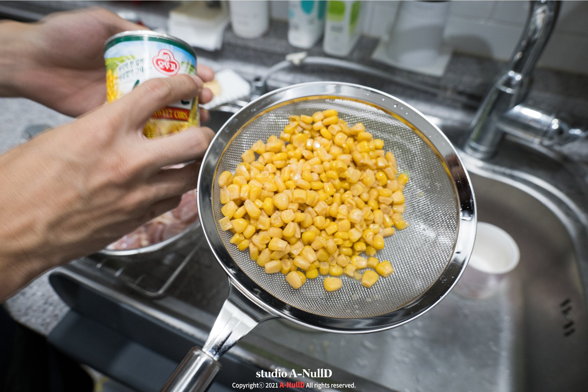 옥수수콘인데, 워낙 좋아해서 물기 빼면서