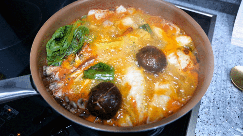 육수 붓고 끓여주면 간단하게 끝이 나네요.