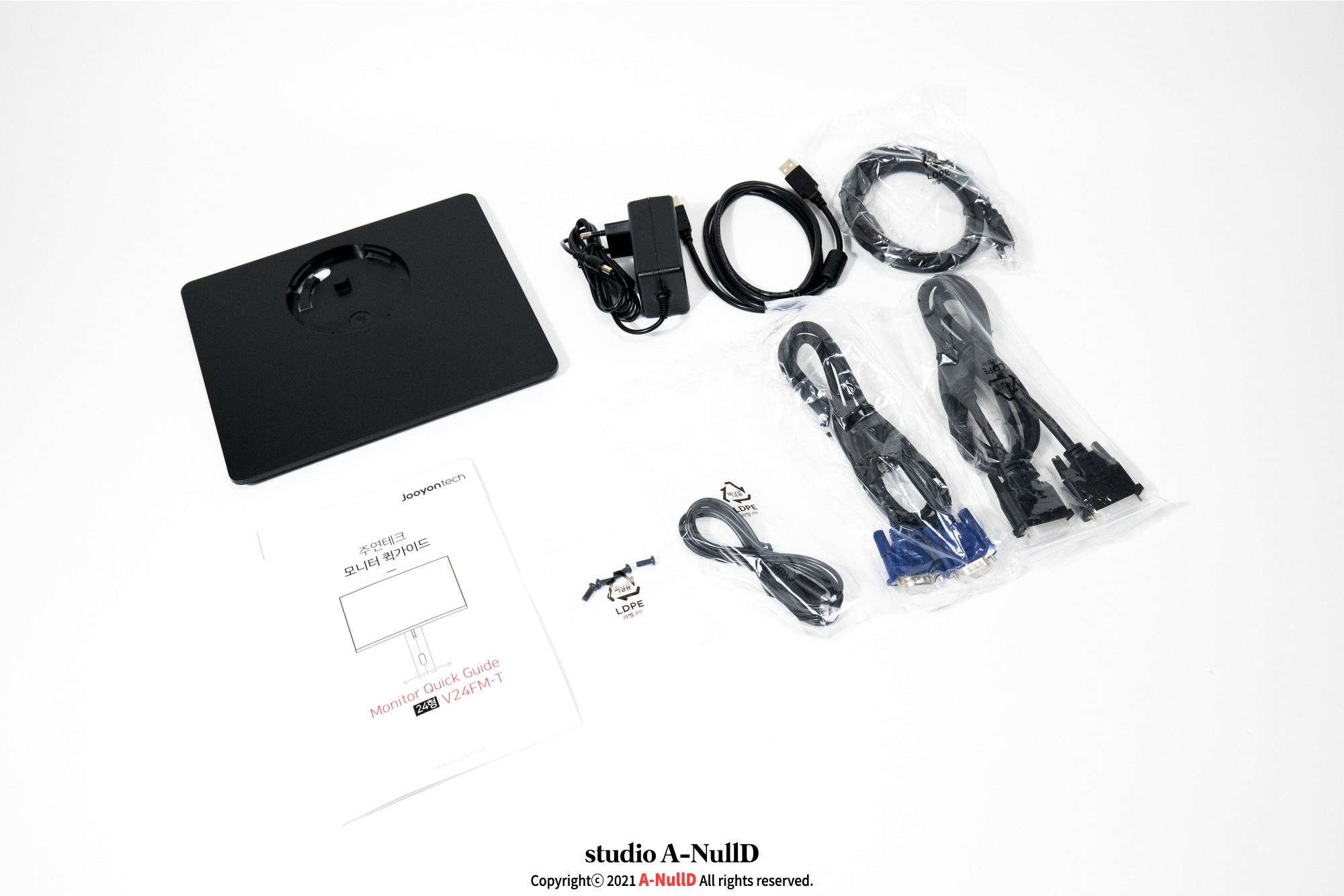 여러 케이블과 설명서.