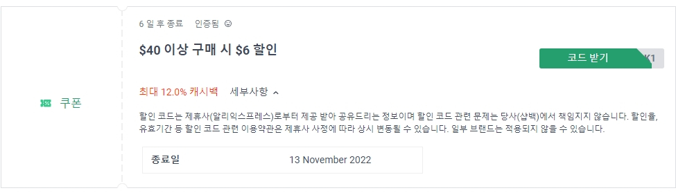 *2022.11.04 사용 가능 할인코드 업데이트