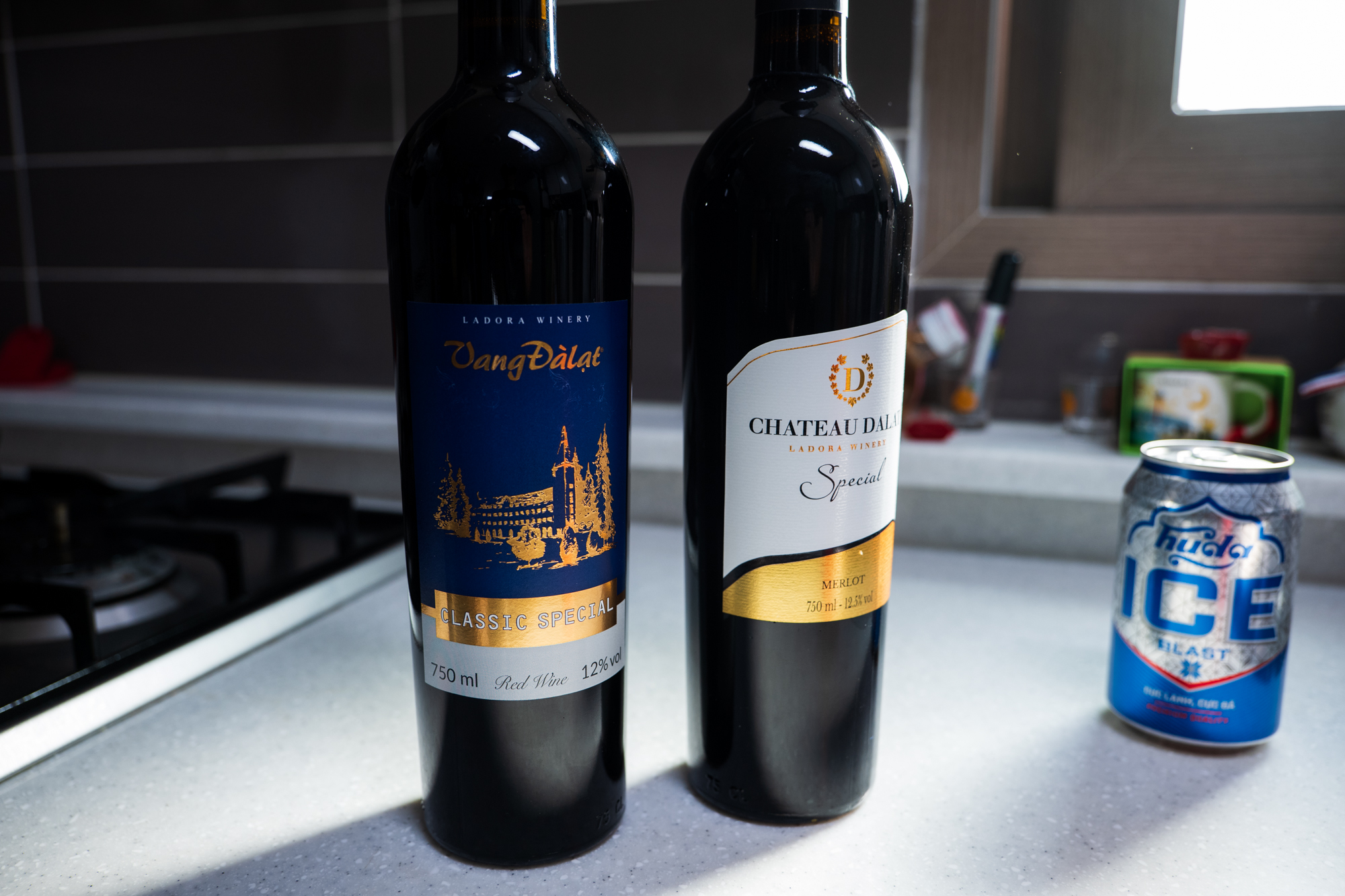베트남 와인인 VAND DALAT(방달랏), CHATEAU DALAT(샤또달랏) 두병 샀는데, 제가 맛을 보진 못했네요. 듣기로는 특이한 향신료 맛이 난다고 들었는데, 저도 궁금하네요. 스폐셜 이런 딱지 붙어있는 걸로 샀어요.