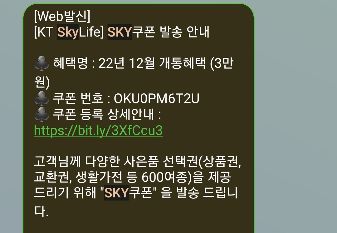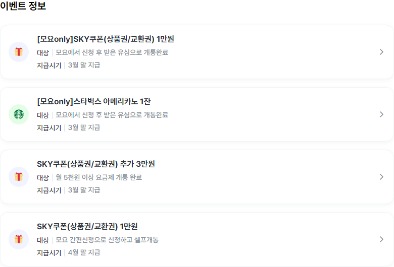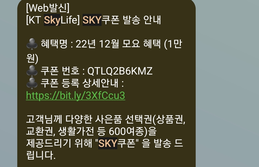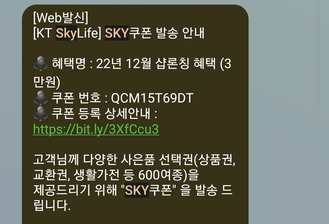 SKY 쿠폰을 총 7만원 지급 받았어요.