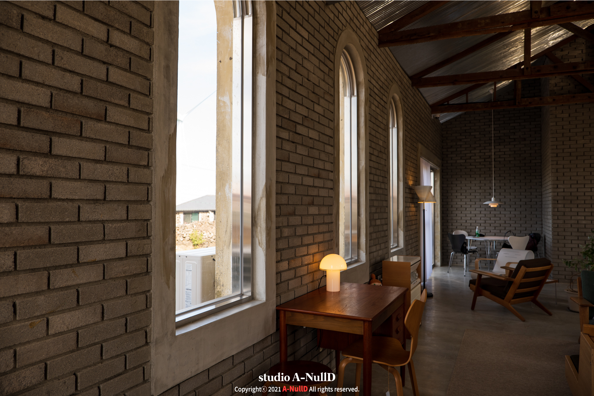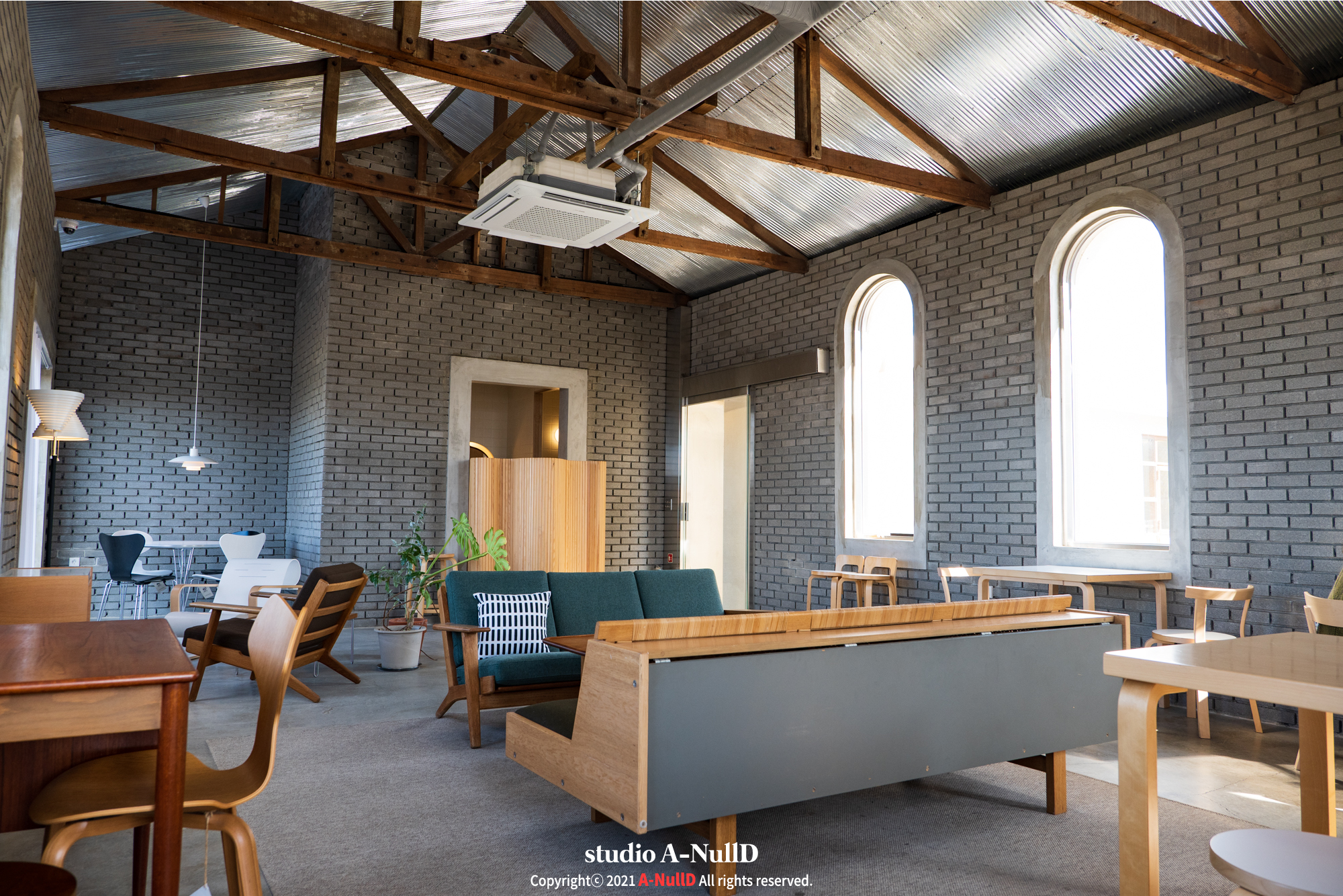 단층 건물. 내부에 많은 컬러를 쓰진 않았는데, 투박한게 오히려 멋스럽네요!