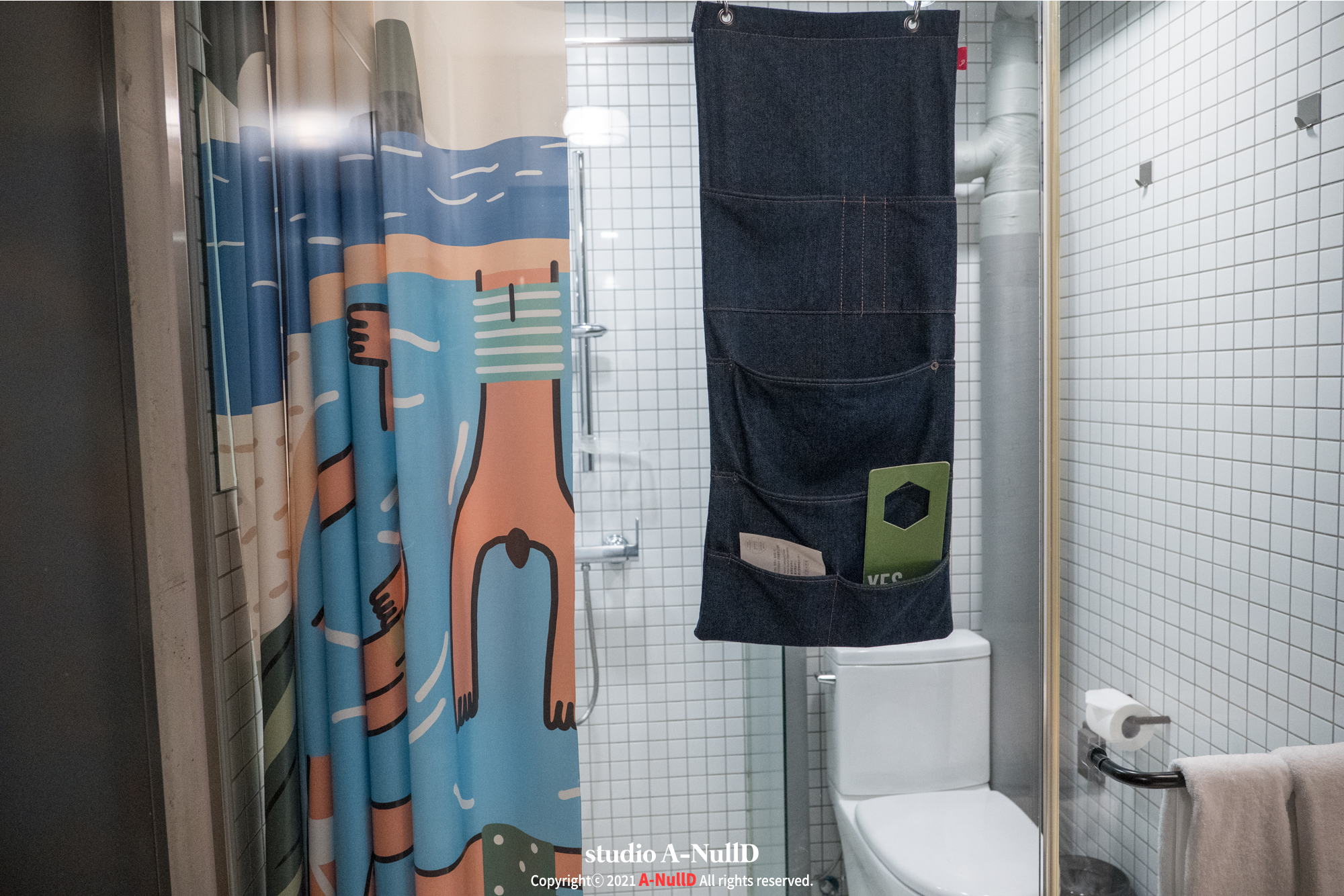 욕실도 조금 민망합니다. 혼자 쓰기엔 상관 없지만, 투명 유리로 너무 오픈되어있죠. 물론 가림막은 있지만... 이건 왠지 1인용 숙소로 사용해야 할 것 같은데, 제대로 못보고 둘이 쓰는 기분이 드는데요.