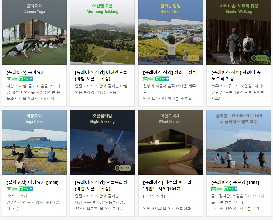 플레이스 캠프 제주에서는 다양한 액티비티들도 즐길 수 있어요. 혼자 여행하시는 분들도 다양한 놀거리 볼거리도 있네요!