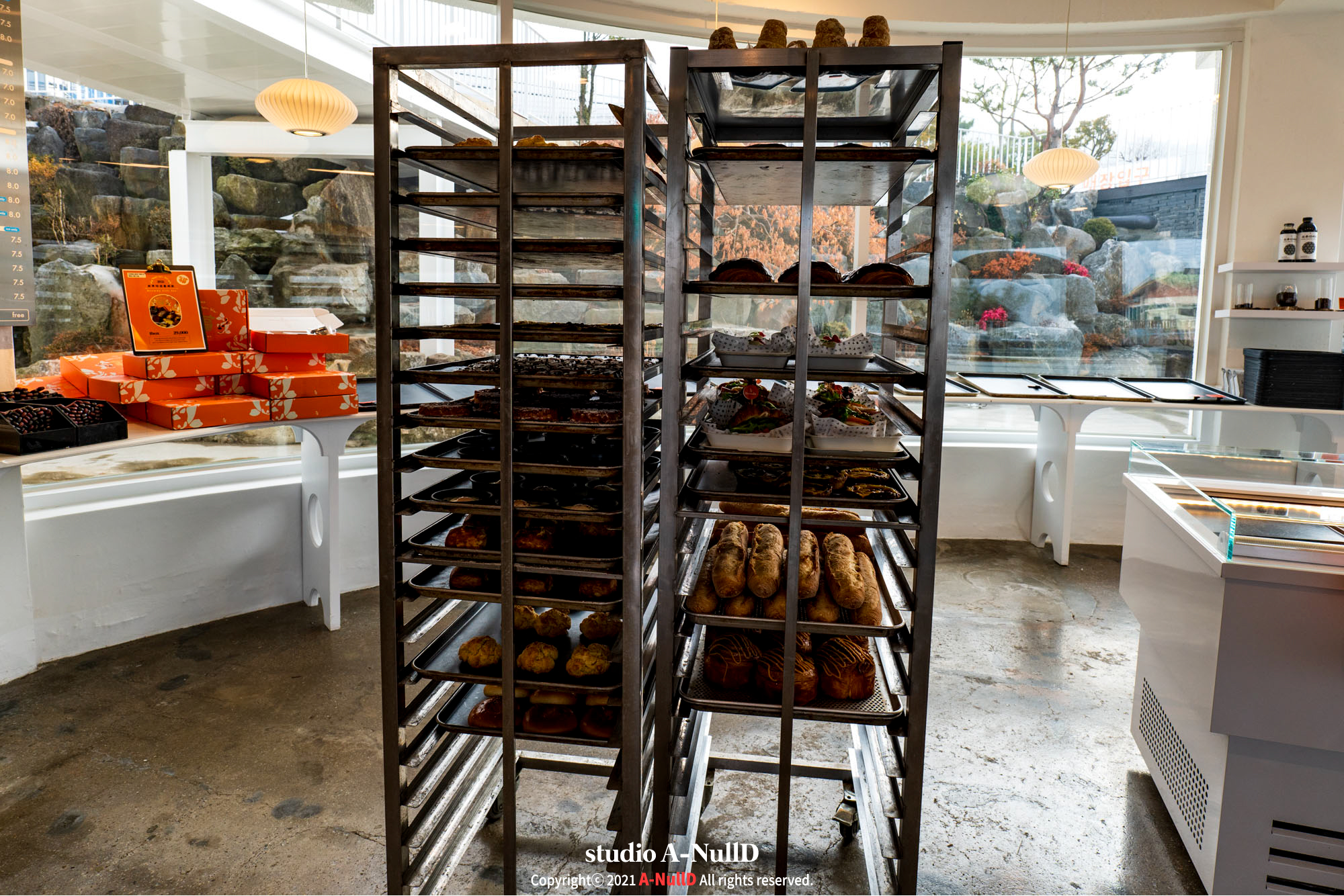 이른 시간이어서 그런지 카페 내부에는 사람은 없었고, 특색있는 테이블과 창가 한켠으로는 좌식으로 이용할 수도 있었으며, 계산대 뒤로는 한창 직원분들이 베이킹 중이셨다.