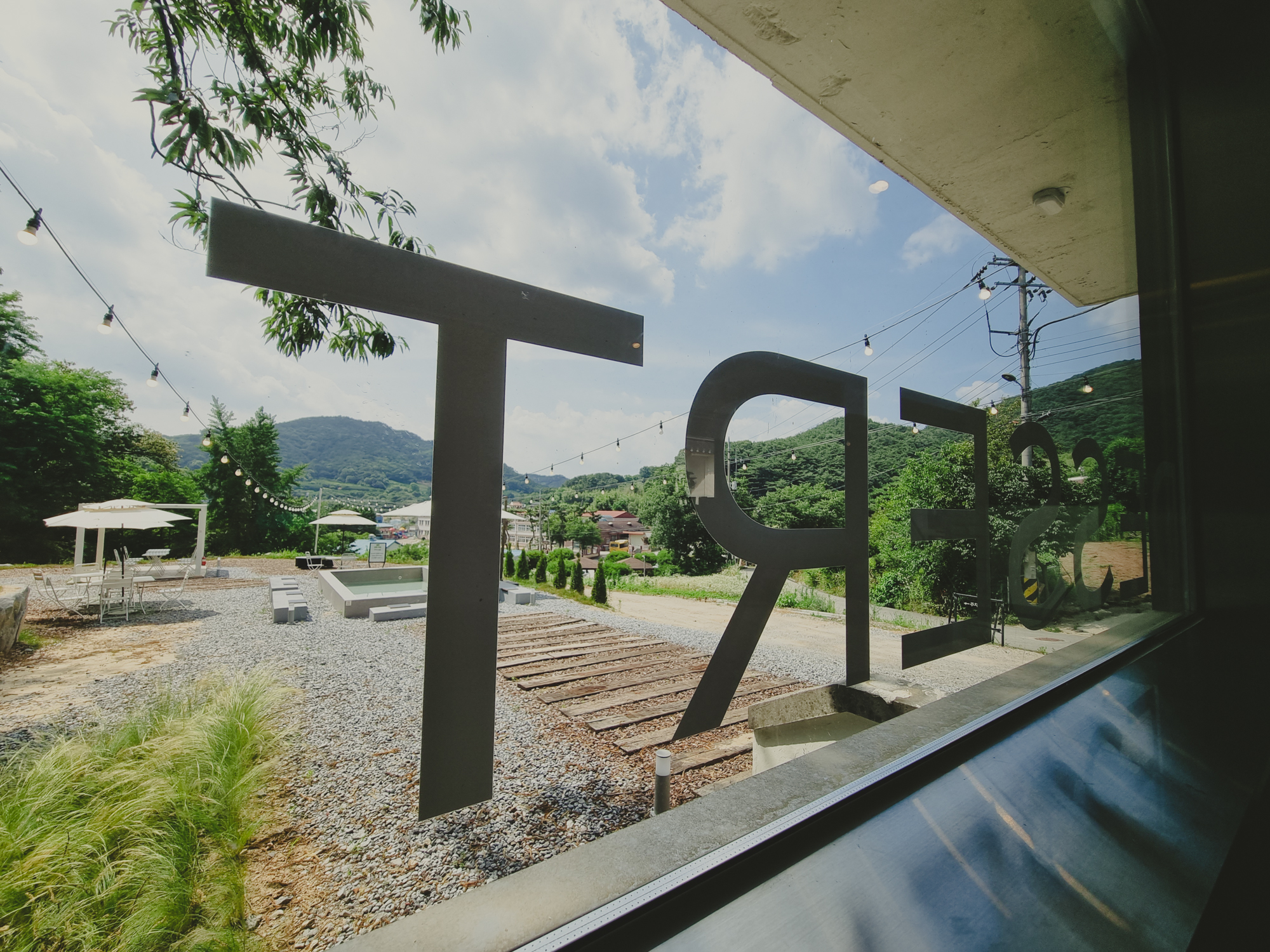 성흥산성에서 차를 타고 내려오는 길에 있던 카페에요. 주차장도 있습니다. 날씨가 더웠는데, 더위도 식힐겸 찾아들어갔어요.
