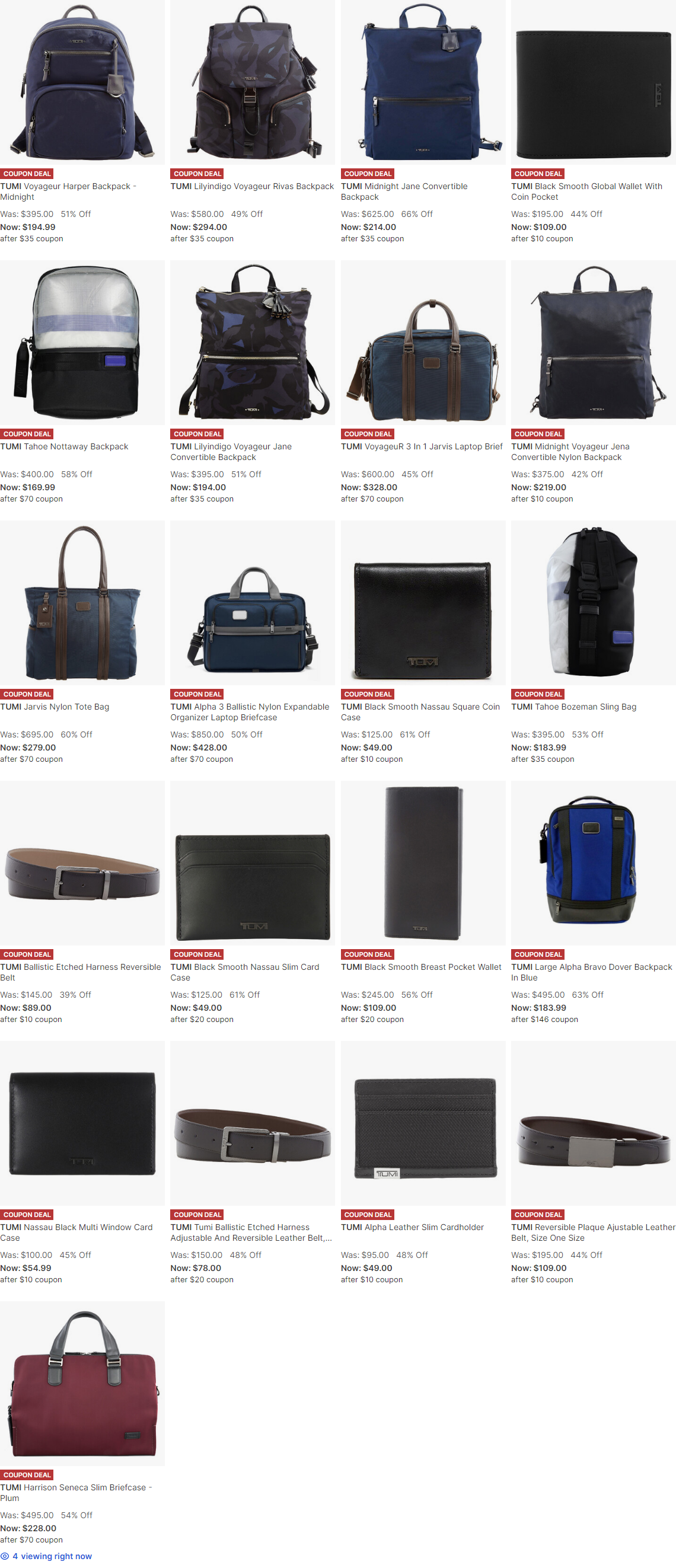 남성용 지갑부터, 여성용 백팩, 여행용으로 쓸만한 작은 가방들까지 다양하게 있네요.