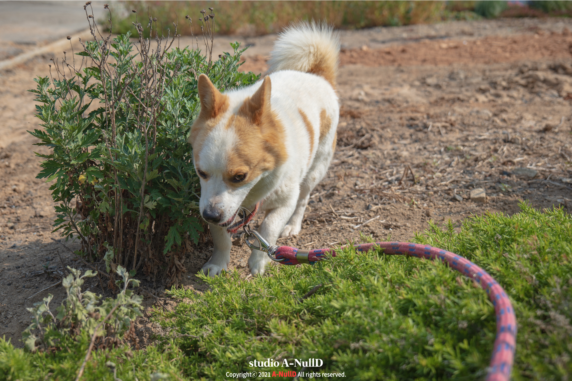 그전날 주인분께 설명 들었던 목줄을 해주고 나가자마자 지 갈길을 갑니다.