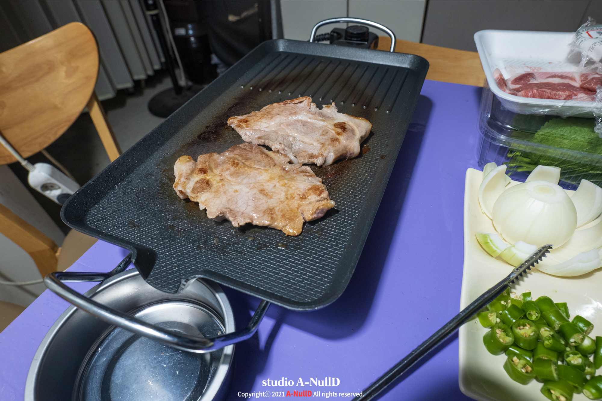 그냥 주방공간에 야채와 고기 구울 수 있는 셋팅을 도와준거 였네요.