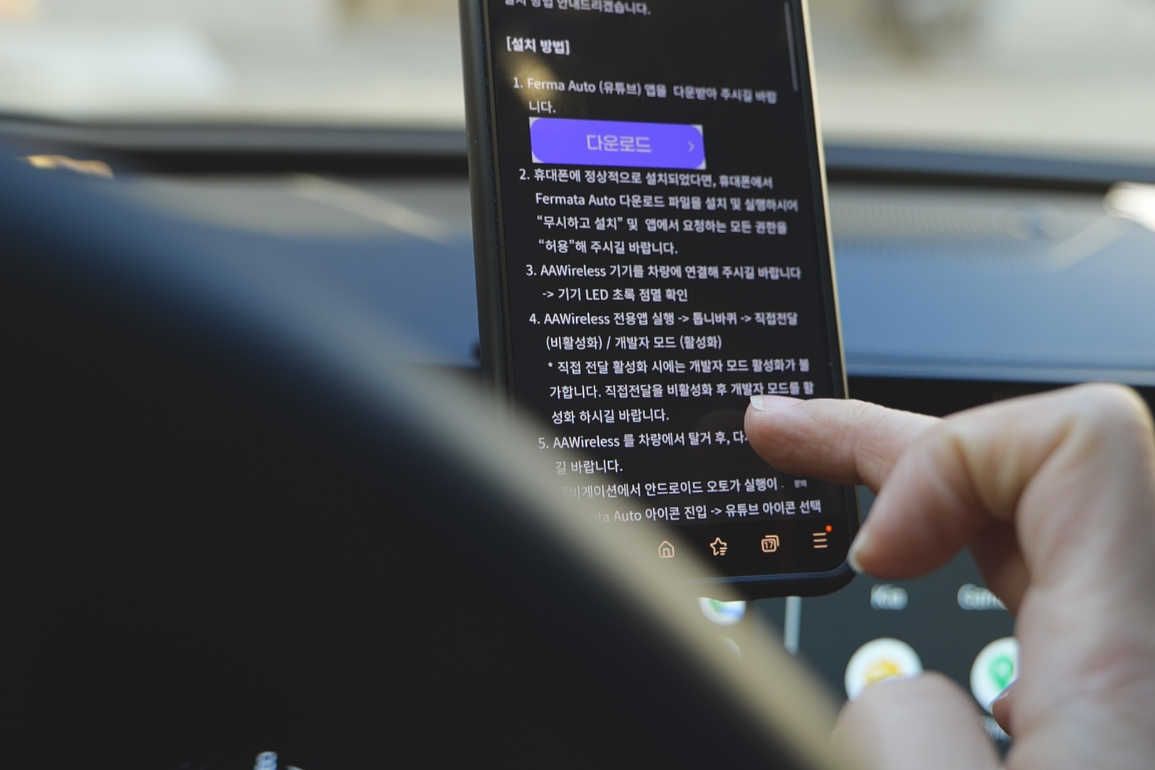 차량과 연결에 앞서서는 AAWireless 앱을 깔아야 되요.