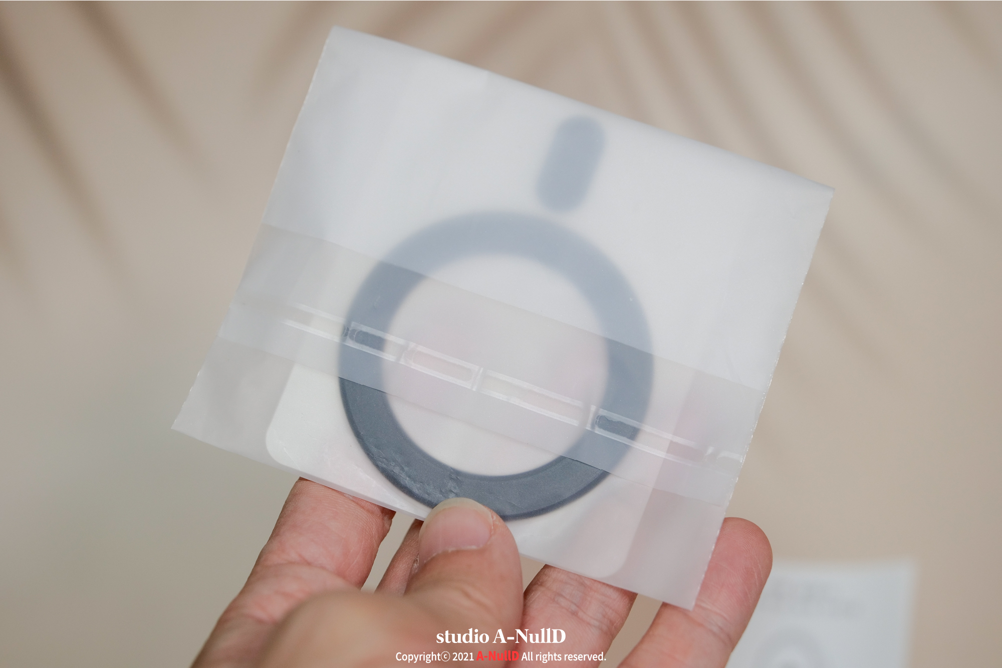 예전에 쓰던 케이스에도 맥세이프 자석을 붙여줬어요. 구입한 맥세이프 케이스가, 알리에서 구입했는데, 그래서 그런지 조금 마감이 안좋긴하더라고요. 이렇게 뒷면 스티커로 된 맥세이프 자석을 붙여주면 끝.