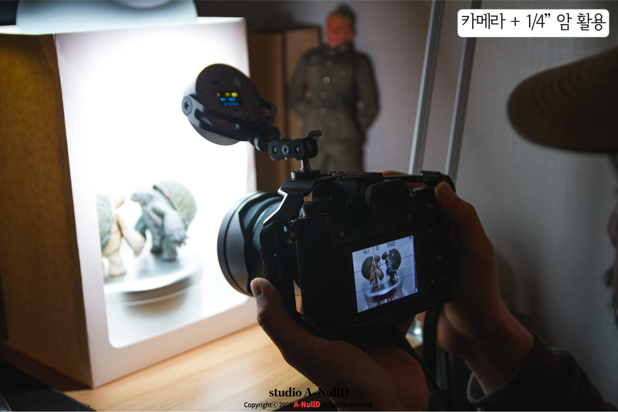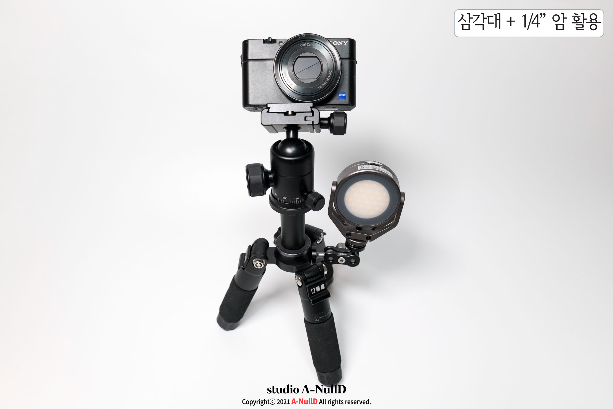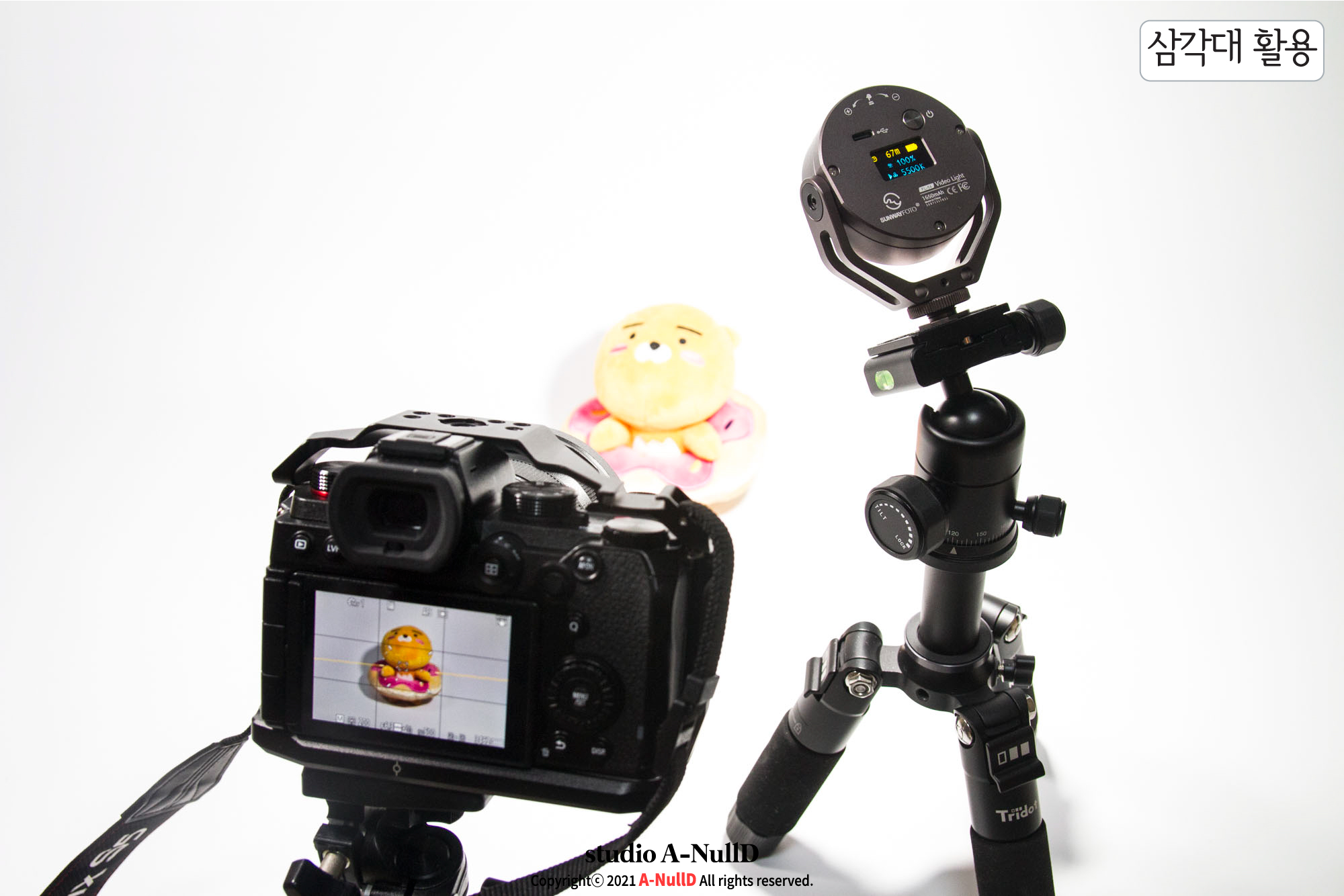 삼각대에 결합하여 제품 촬영시에도 편리하게 사용할 수 있다.