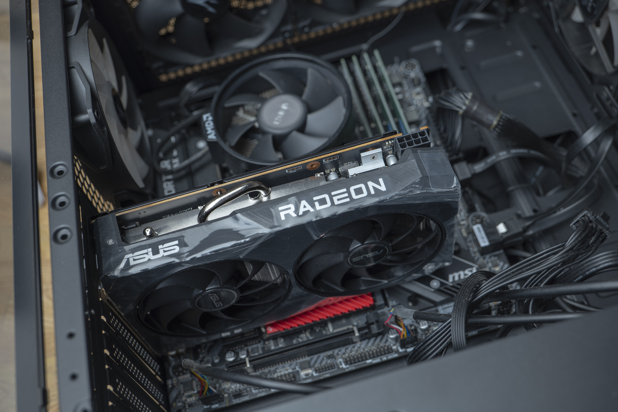 지원받은 제품은 ASUS DUAL 라데온 RX 7600 08G V2 OC D6 8GB 입니다. 그래픽 카드의 제품명이 의미하는 것들은 이렇습니다. 라데온은 과거 R5, R7, R9 로 구분되었지만, 현재는 RX 라는 명칭을 사용하고 그 뒤에 붙는 숫자를 통해 성능을 구분지었습니다.