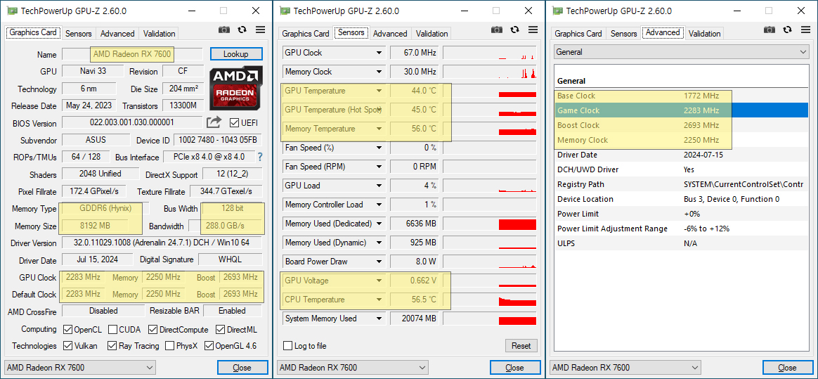 VGA: ASUS DUAL 라데온 RX7600 O8G OC D6 8GB
