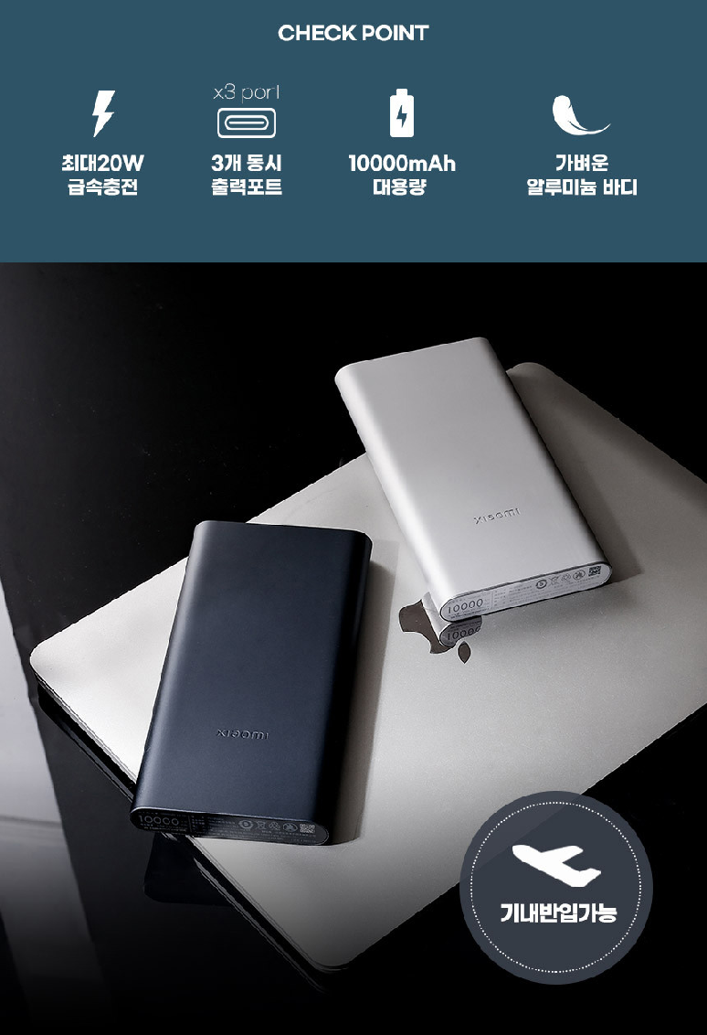 샤오미 고속 대용량 초고속 충전 휴대용 보조배터리 10000mAh 7세대 22.5W C타입 - 보조배터리 | 쿠팡