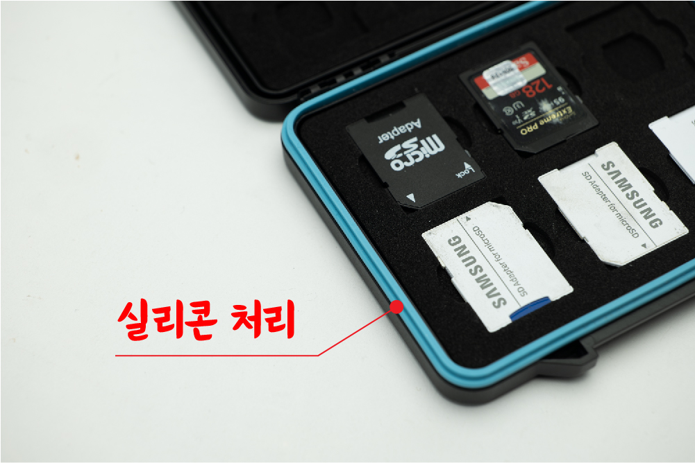 설명에는 방수도 된다고 하긴 하는데, 그렇다고 메모리카드 넣고 테스트 하실 분은 없겠죠? 실리콘 처리가 되어있습니다.