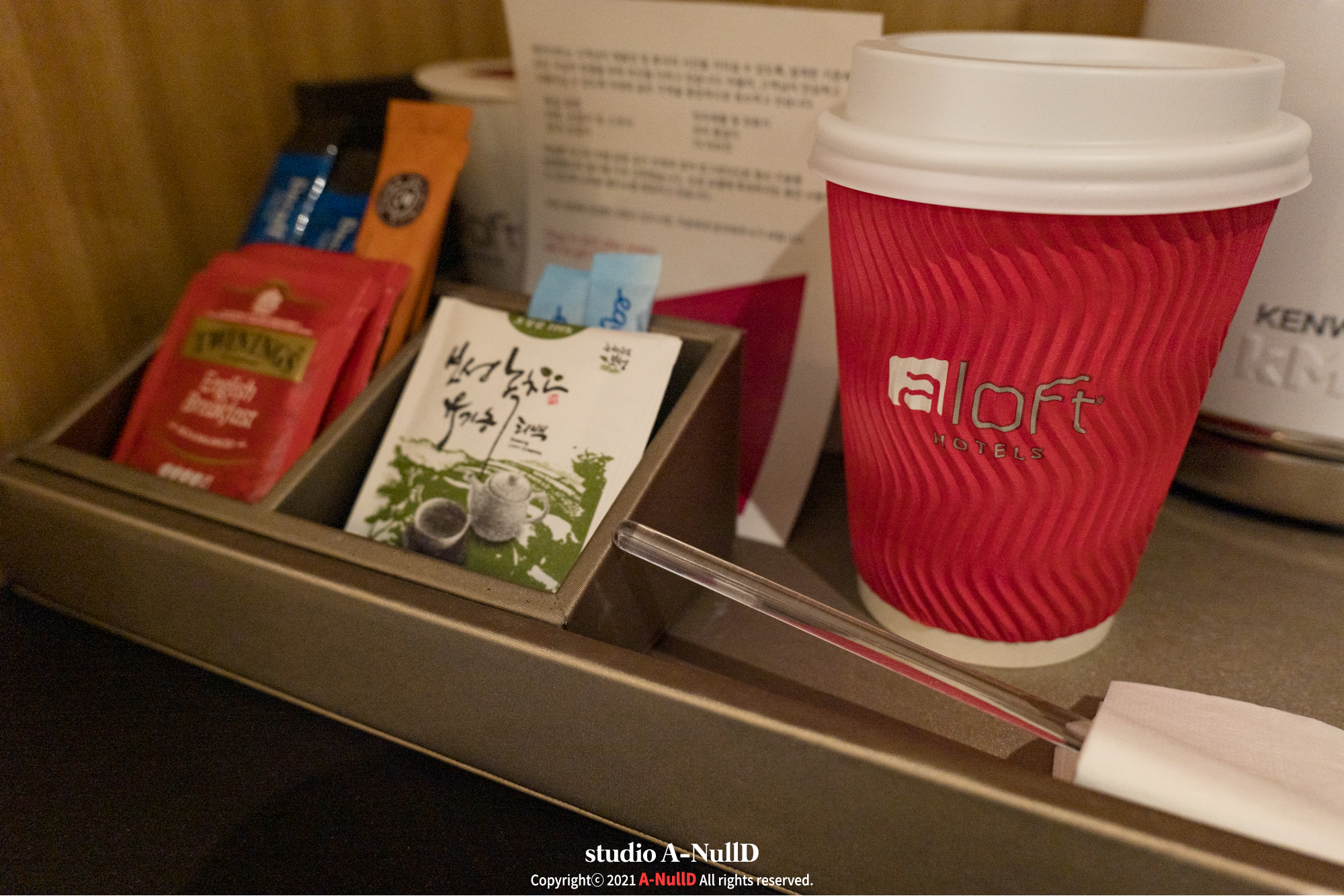 커피와 녹차 등등... 일회용 컵과 기억잘 안나긴 하지만 사진에 일회용 컵 밑에 있는건 머들러 인가?