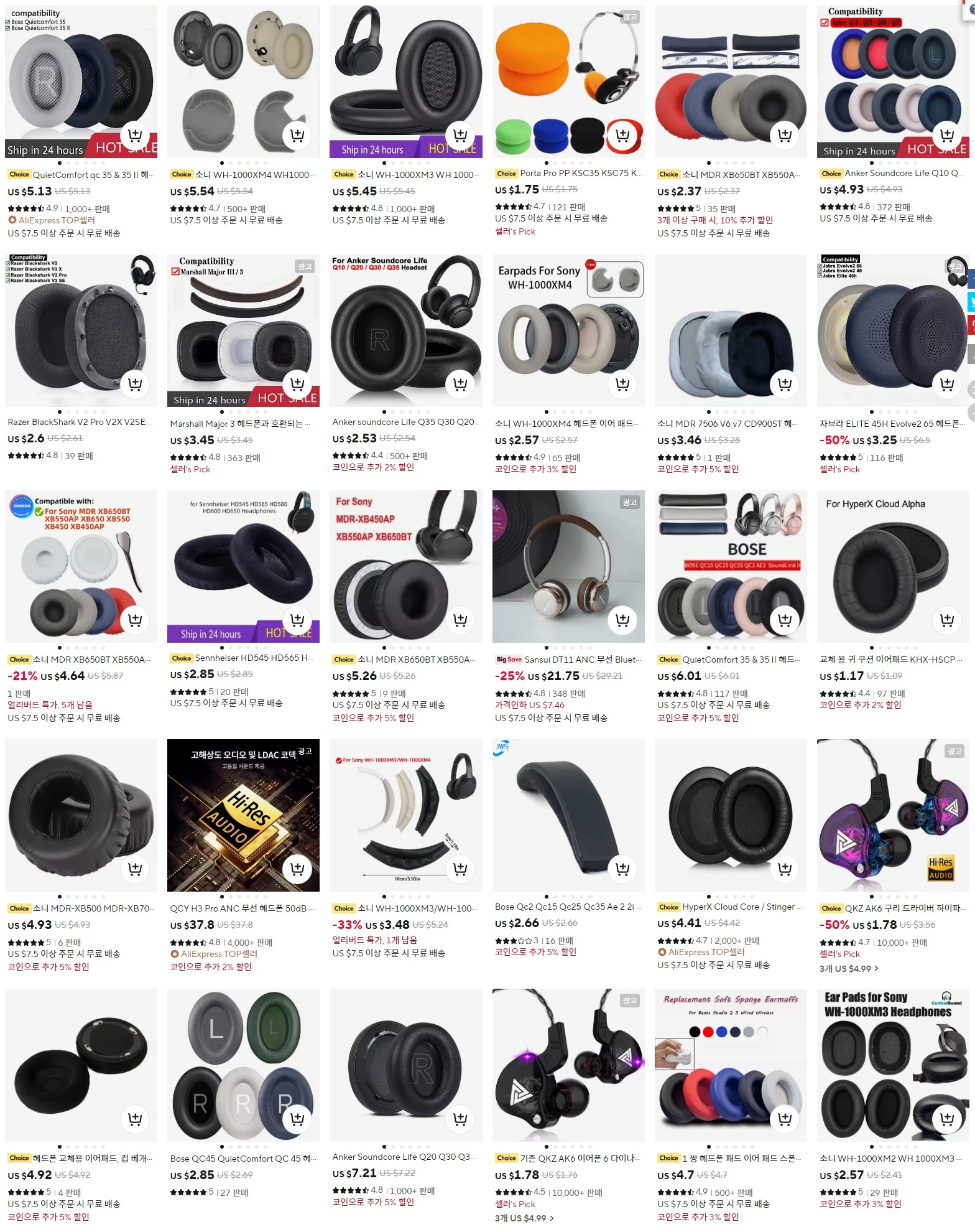 인기 있는 소니 헤드셋 제품 부터, 엄청 다양한 교체용 이어패드가 있더라구요.
