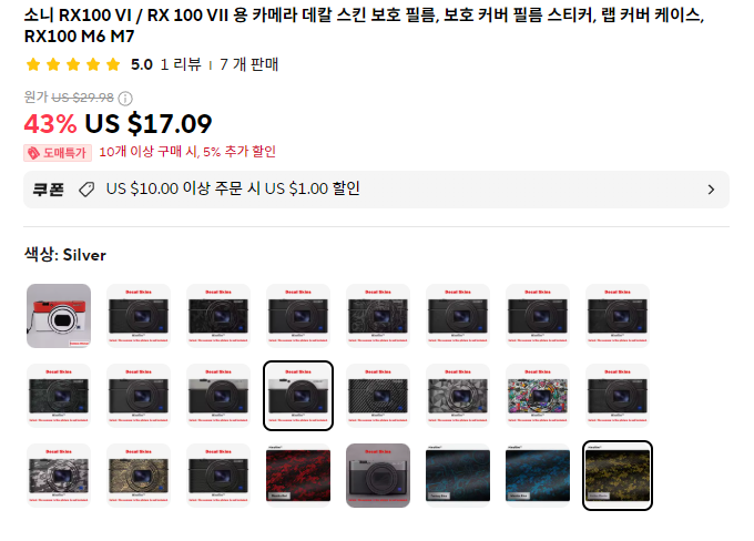 제가 가지고 있는 카메라가 RX100 시리즈 중에서도 두번째로 출시한 녀석이라 그런지 스킨 종류가 많지는 않더라구요. 그건 좀 아쉬웠어요.