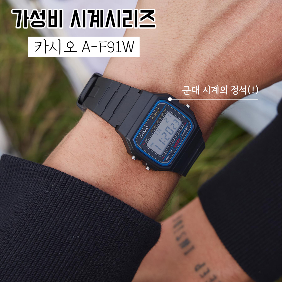 카시오 F-91W 는 1989년 부터 현재까지 판매중인 쿼츠 시계로 극강의 가성비를 자랑하는 베스트셀러 이자 스테디셀러.