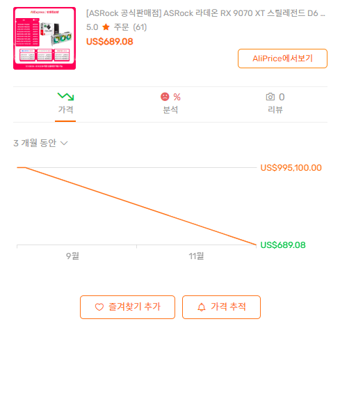 가격 추적기를 사용해서 보니, 이 판매자가 파는 이 물건은 최근 가격이 많이 떨어져있긴 합니다.