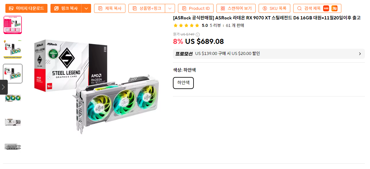 위 제품은 현재는 또 가격이 올랐습니다. 148.87 > 160.82 달러로 하루 이틀 사이에 가격이 올라있네요.