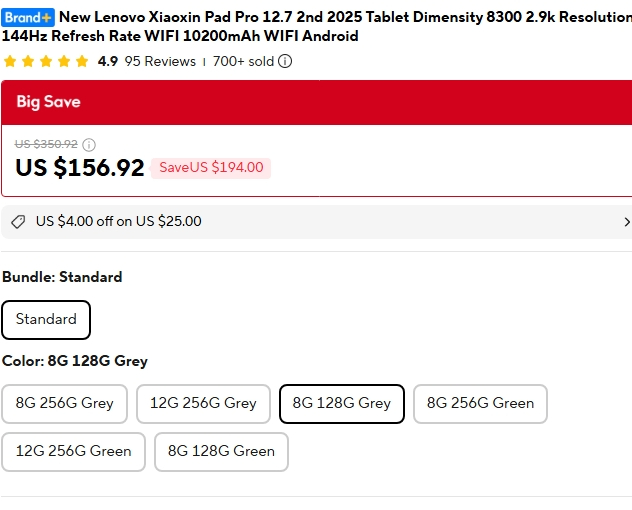 알리익스프레스에서 현재 팔고 있는 샤오신패드 프로 12.7인치 2세대 가격은 [램8G/용량128G 기준] 156.92달러 입니다.