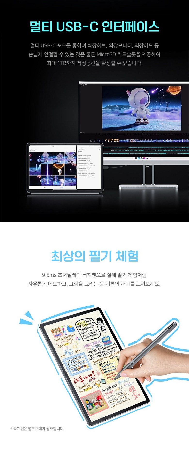 중국 내수롬 문제로 구매후 반글화 작업이 필요합니다. 또한 터치펜이나 무선 마그네틱 키보드는 별도 구매해야 합니다.