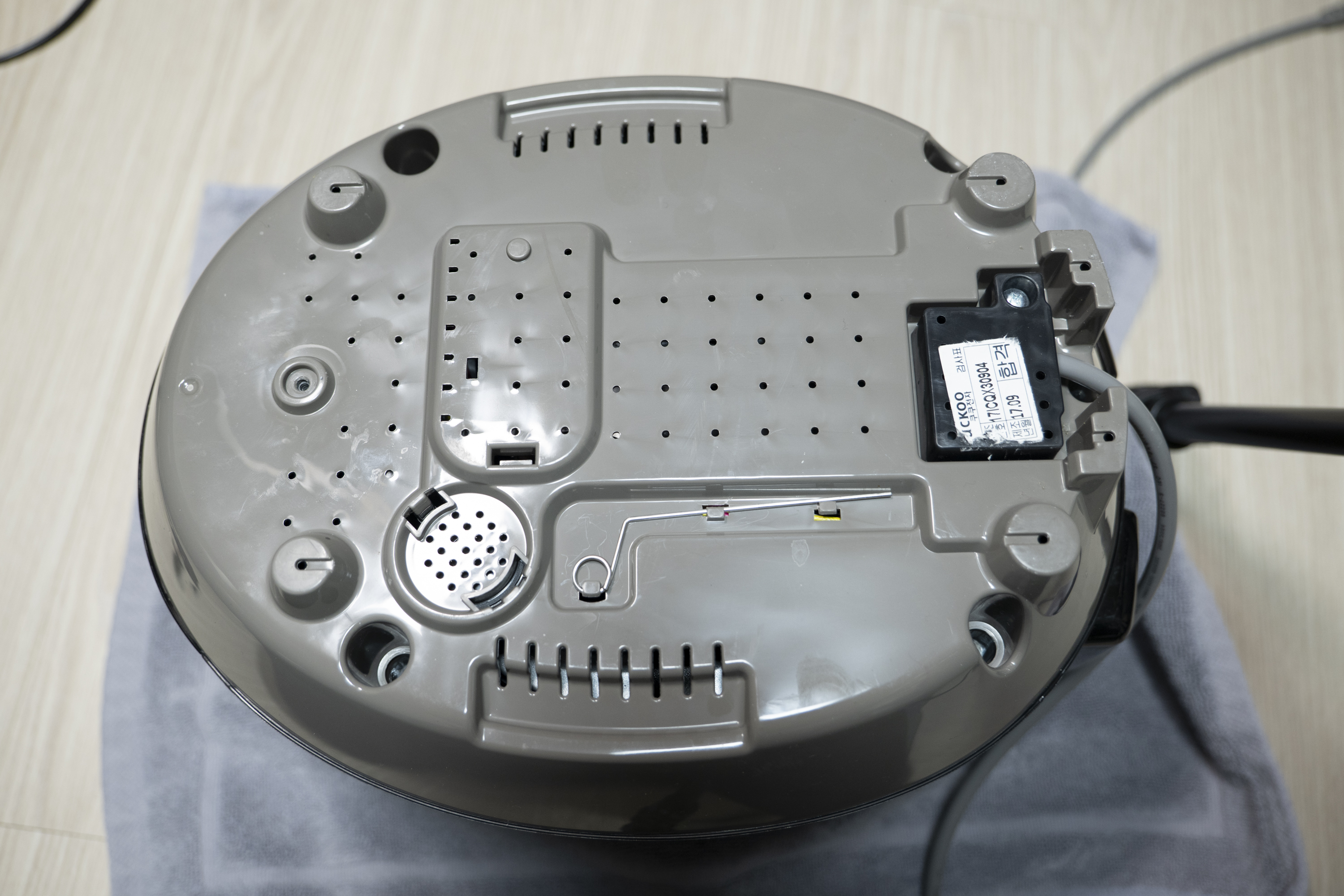 전기 밥솥의 바닥 부에 십자 나사를 풀어서 분해가 가능합니다. 쿠쿠 전기밥솥은 대부분 비슷해보였어요.