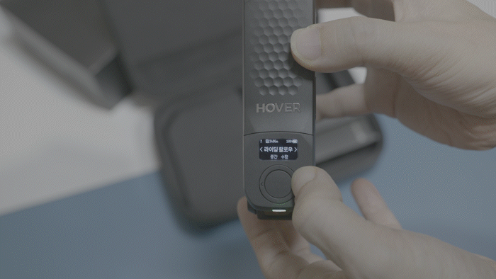 제품 상단에 위치한 LCD 창으로 해당 모드와 배터리 잔량, 그리고 촬영가능한 시간을 확인할 수 있고, 동그란 버튼으로 길게 눌러 전원을 켜거나 끌 수 있고, 좌우 선택하여 모드를 바꿀 수 있습니다.