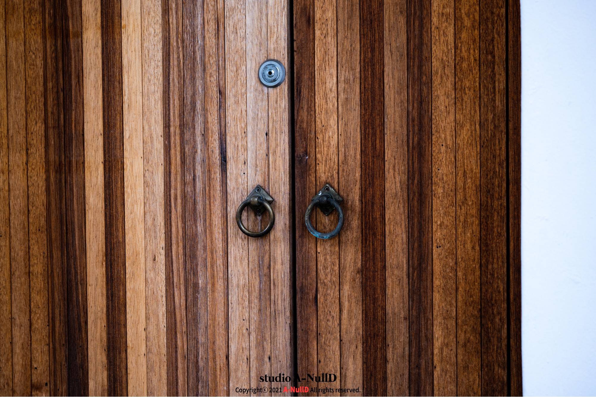 오래되어 보이면서도 현대적인 ... 나무 대문.