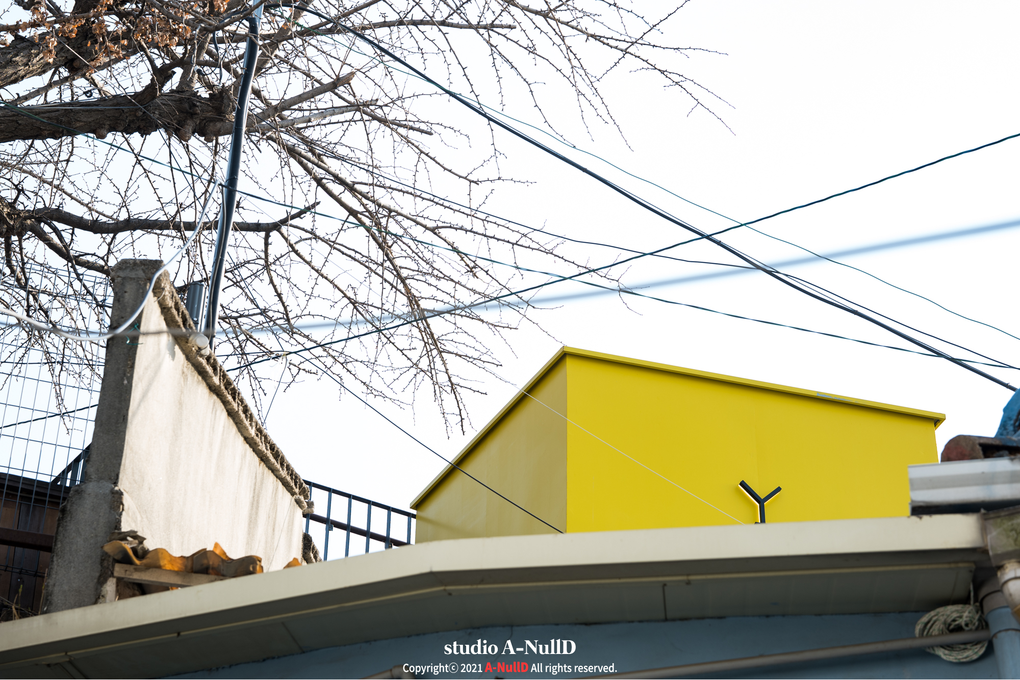 외토리 같은 노란 건물이 눈에 뜁니다.