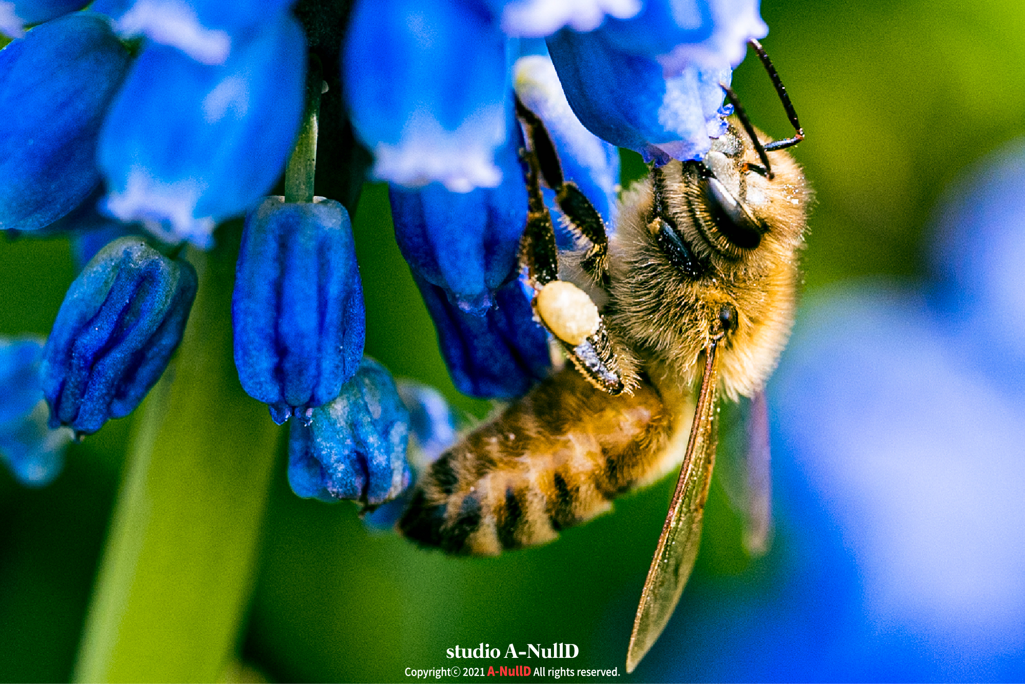 꿀벌 다리에 열심히 꽃가루를 모아... ...