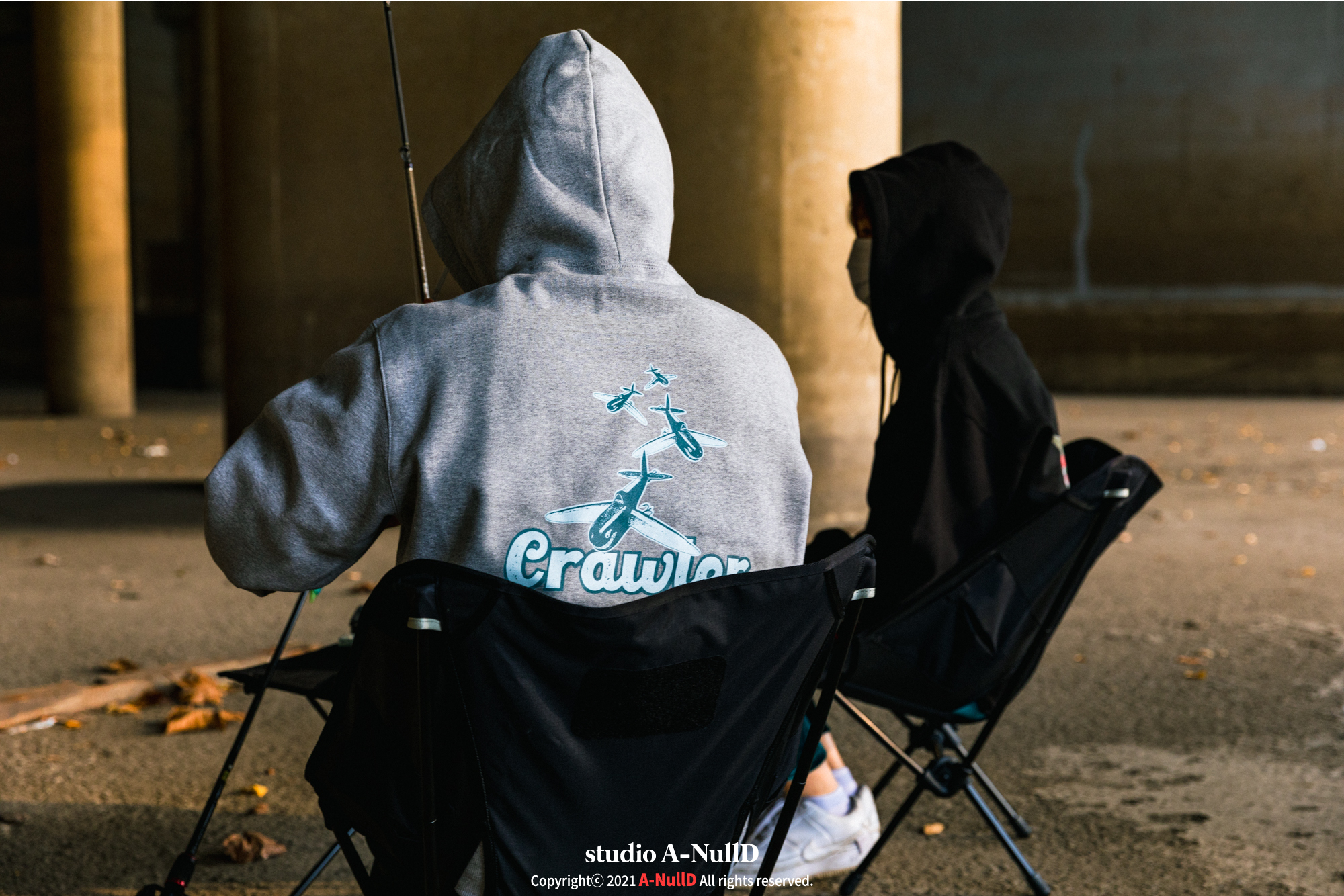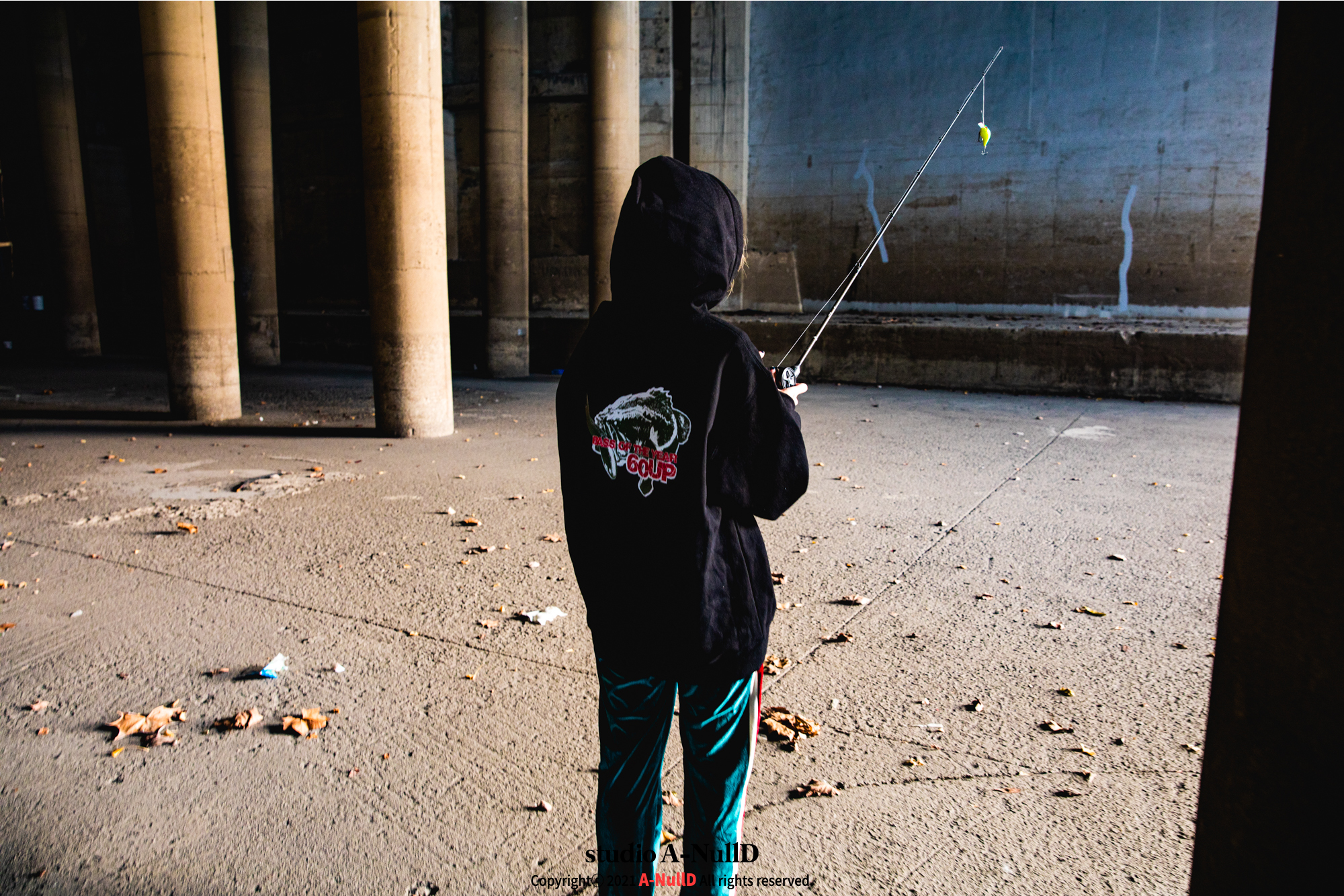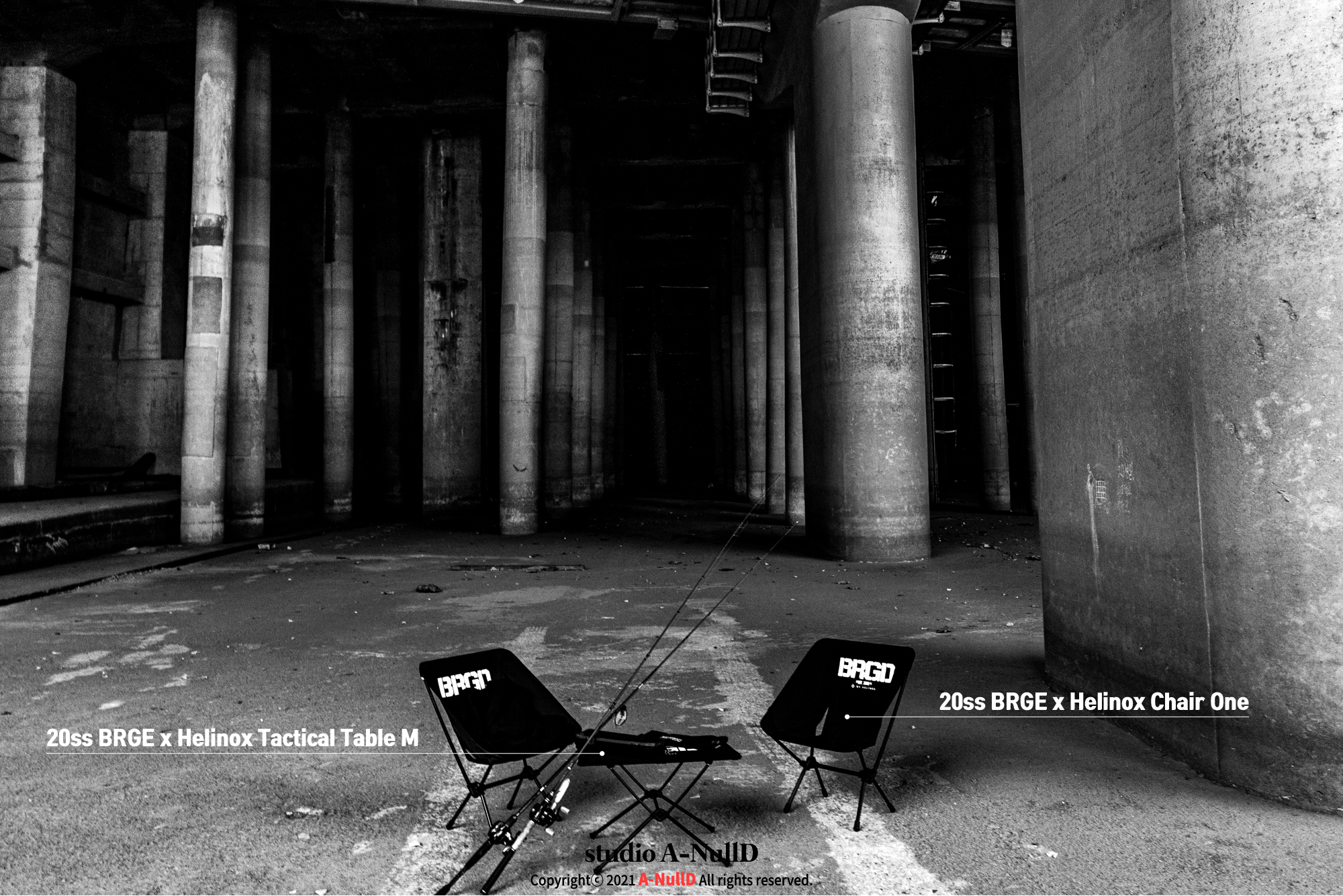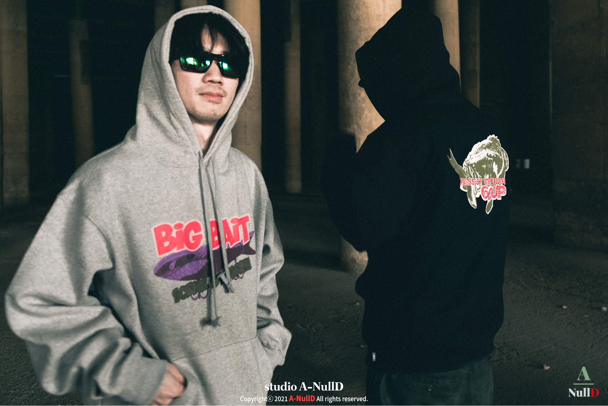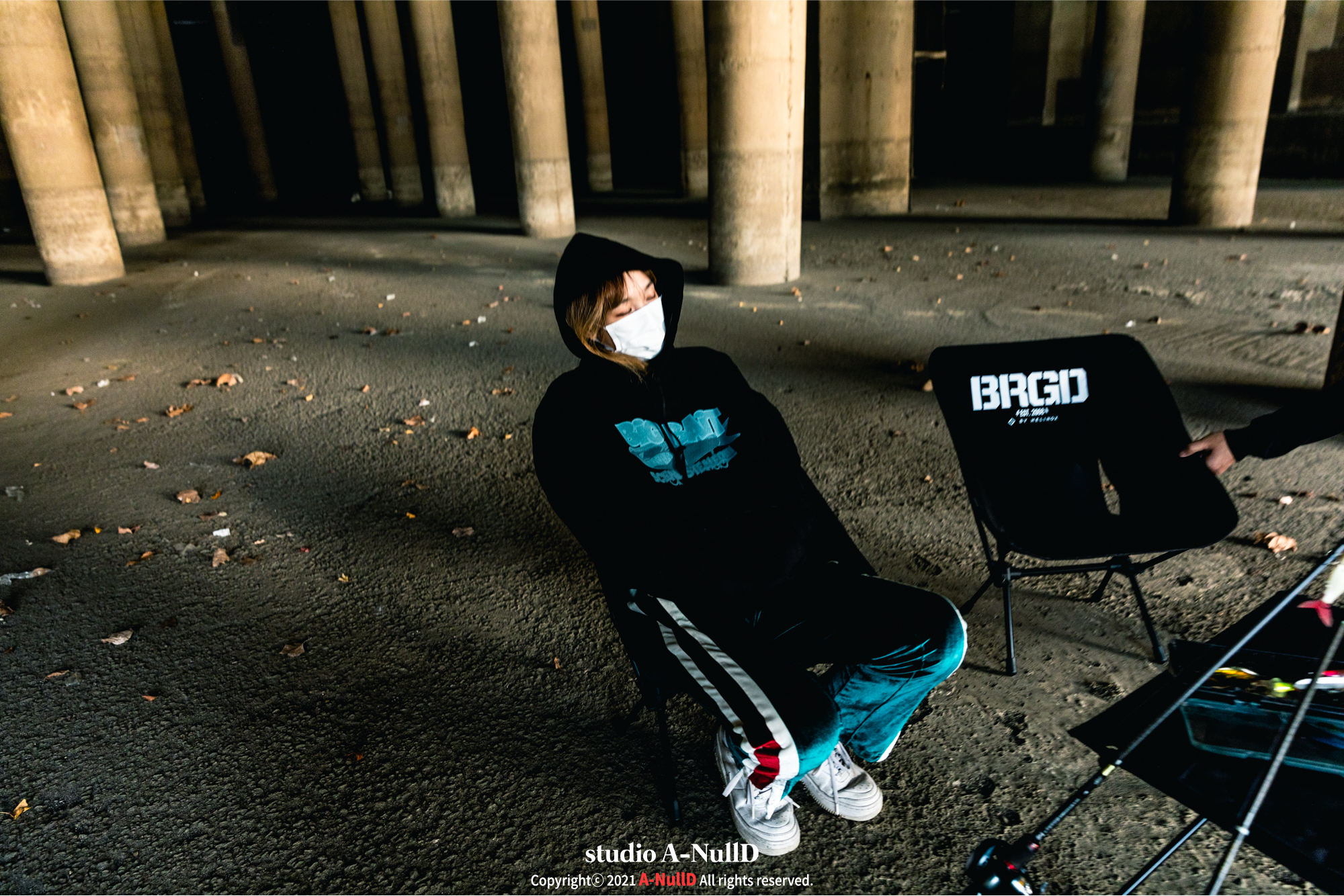 낚시 관련 디자인 답게 낚시대와 관련된 소품들을 들고 촬영을 진행했다.