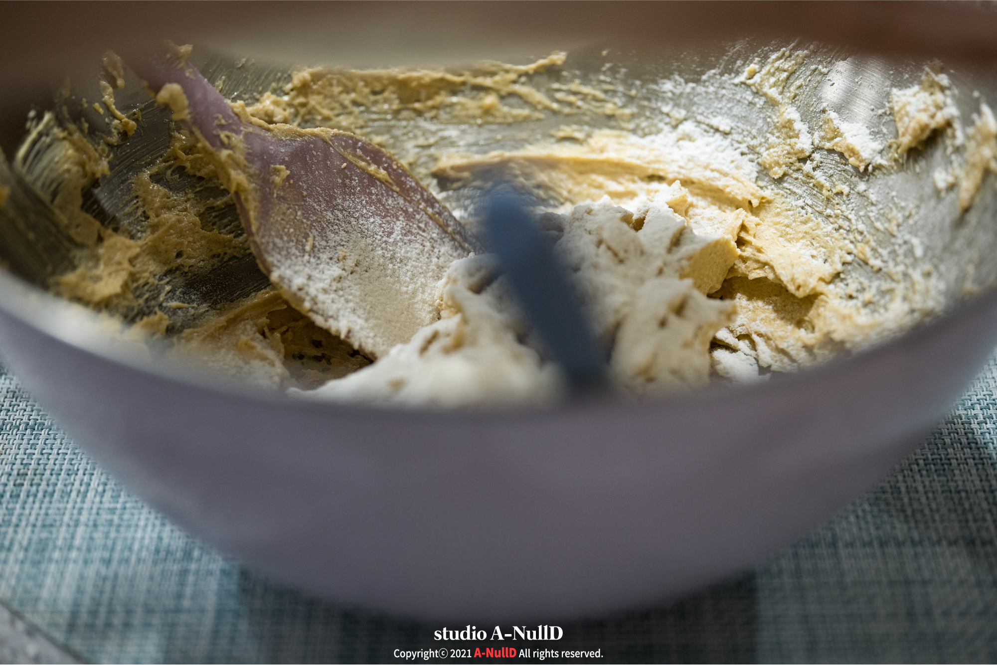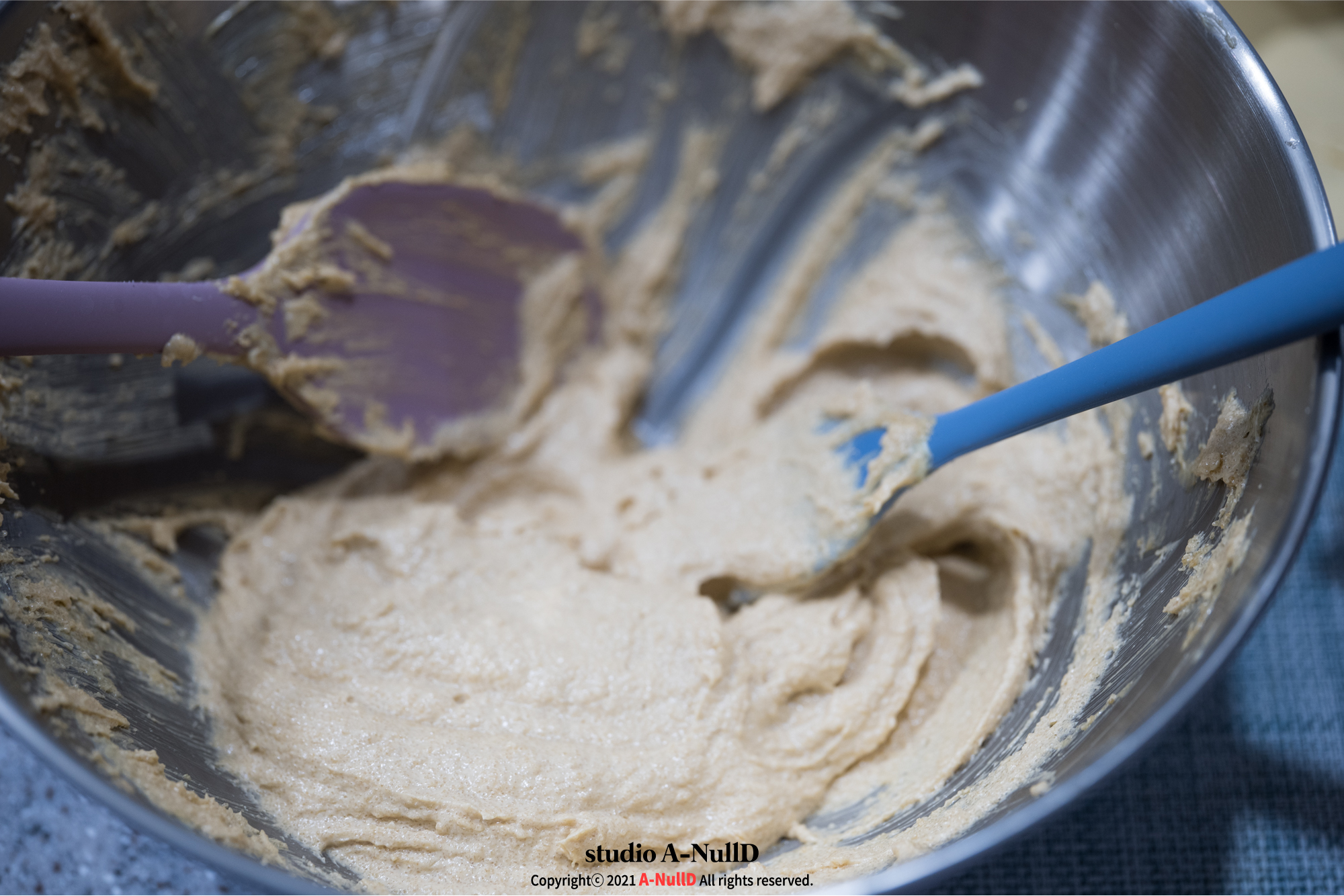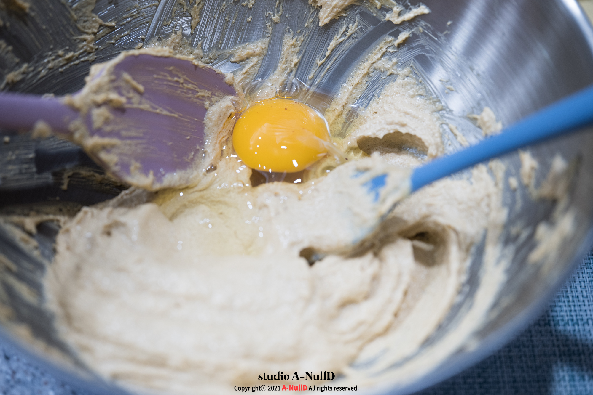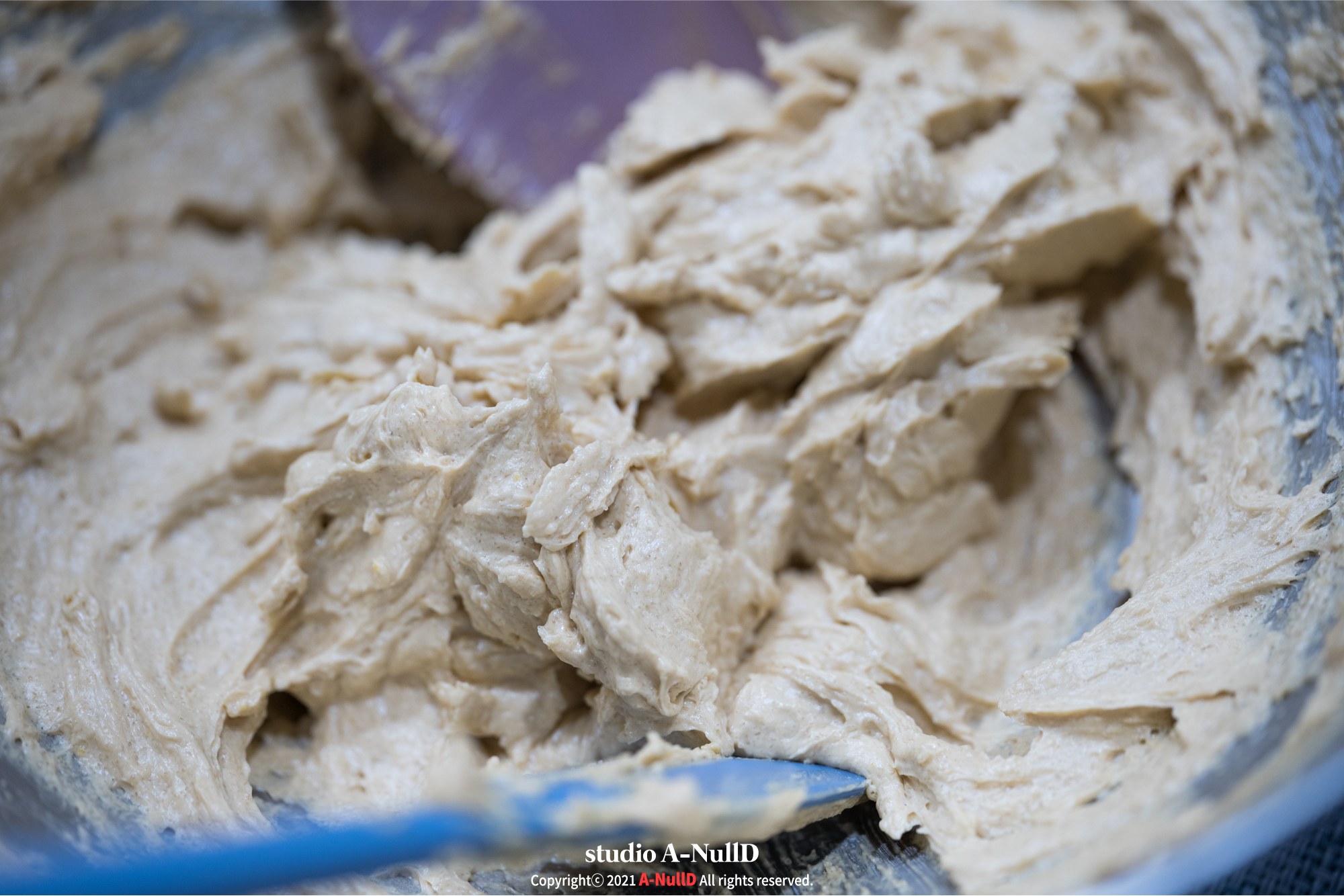 레시피에는 계란을 먼저 넣었는데, 중력분을 먼저 쳐 넣었다. 이런이런...