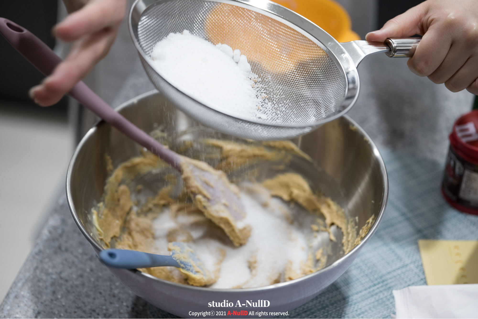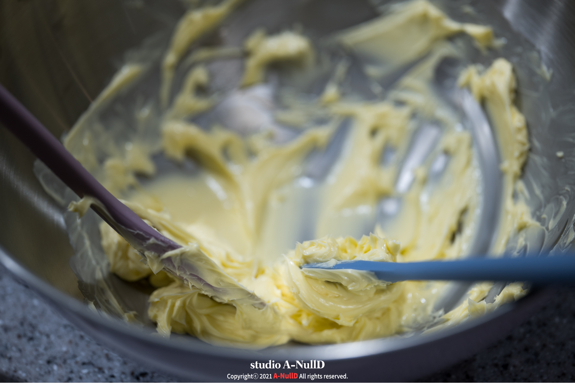 ■ 버터에 설탕을 나누어 넣으면 풀어준다. 쉐킷쉐킷!