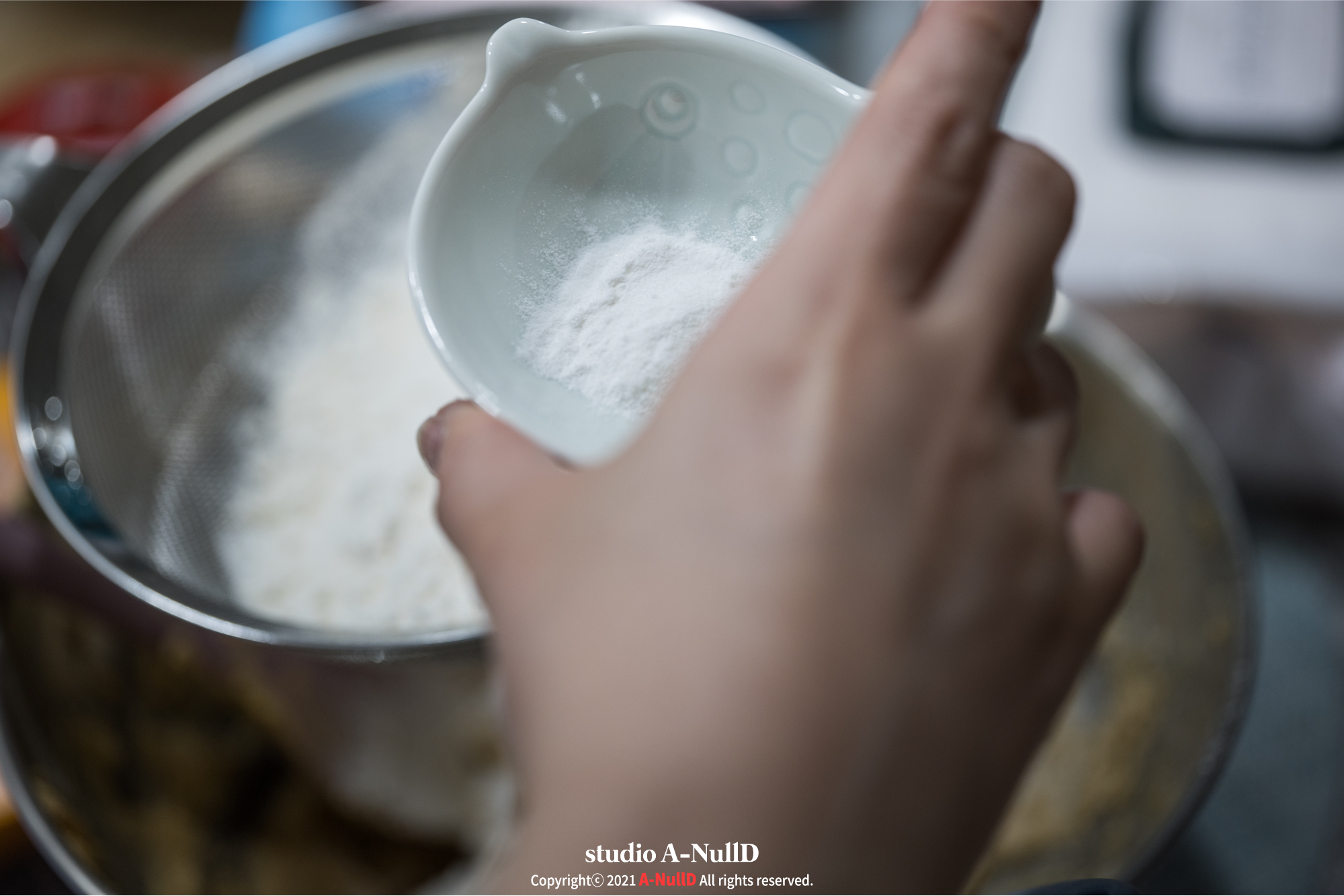 ■ 중력분은 툭툭 체에 쳐서 내려준다.