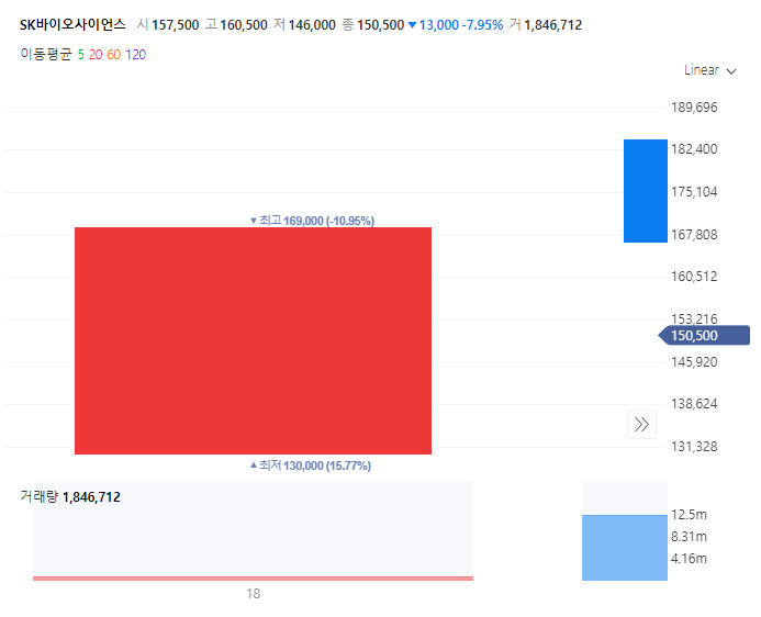 하루 상한가(30%) 를 쳐서 169,000원이 되었다.