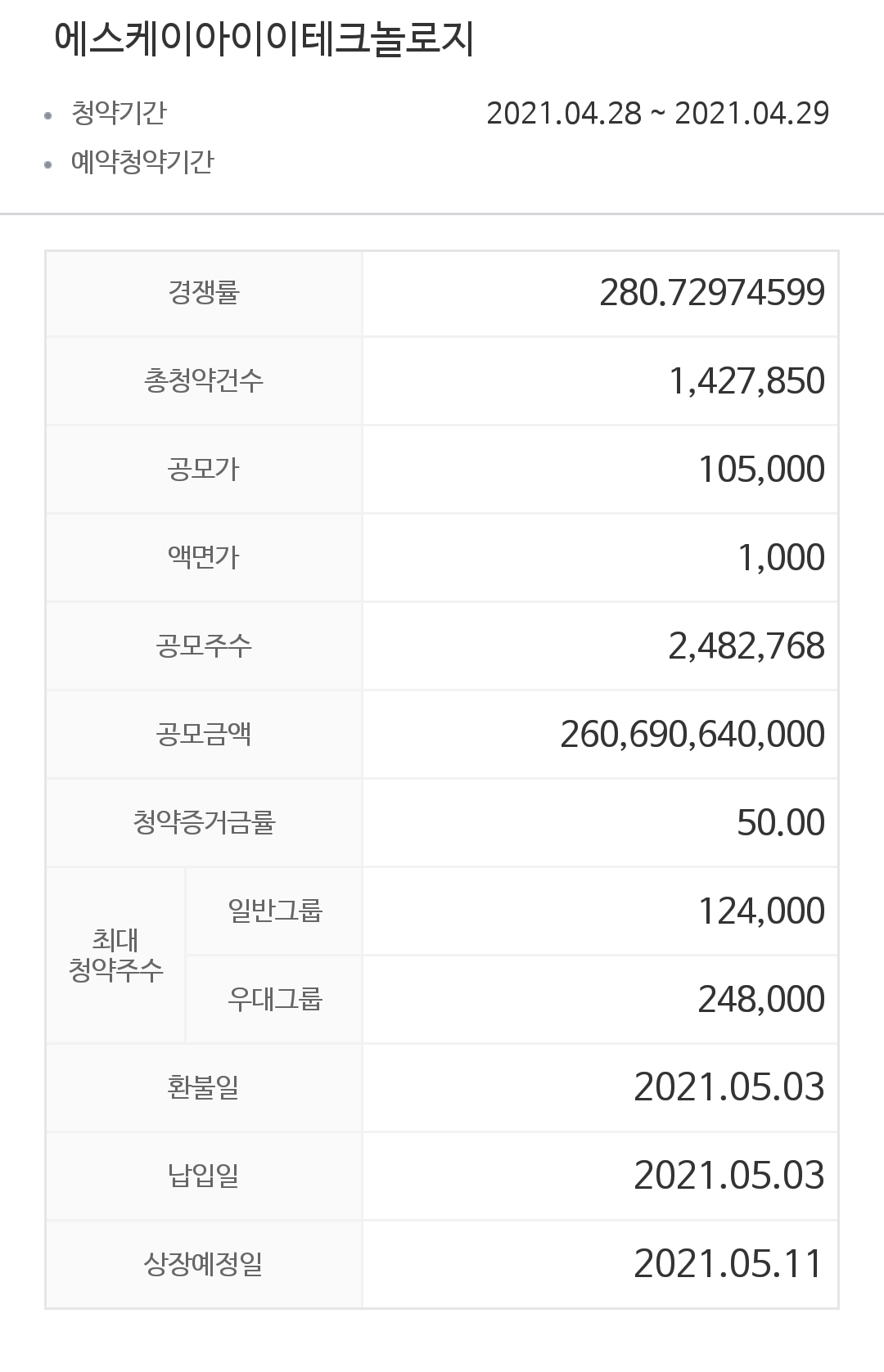 | SK 아이이테크놀로지 공모주 청약(04/28~04/29) (0) | 2021.04.27 |