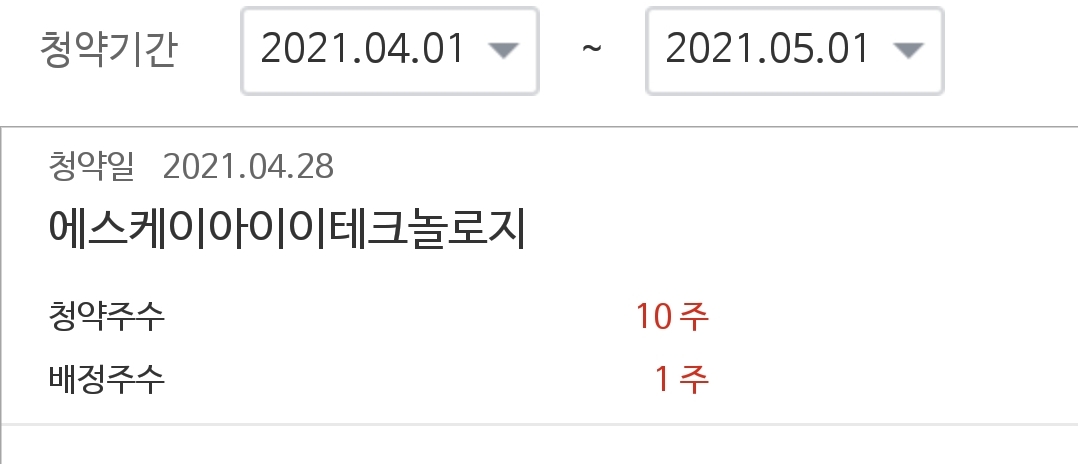 | SK 아이이테크놀로지 공모주 청약(04/28~04/29) (0) | 2021.04.27 |