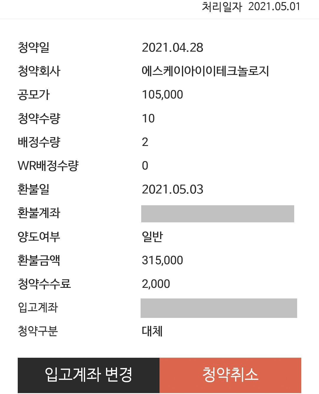 SK 증권에서는 운이좋아서 2주나 배정 받았다.