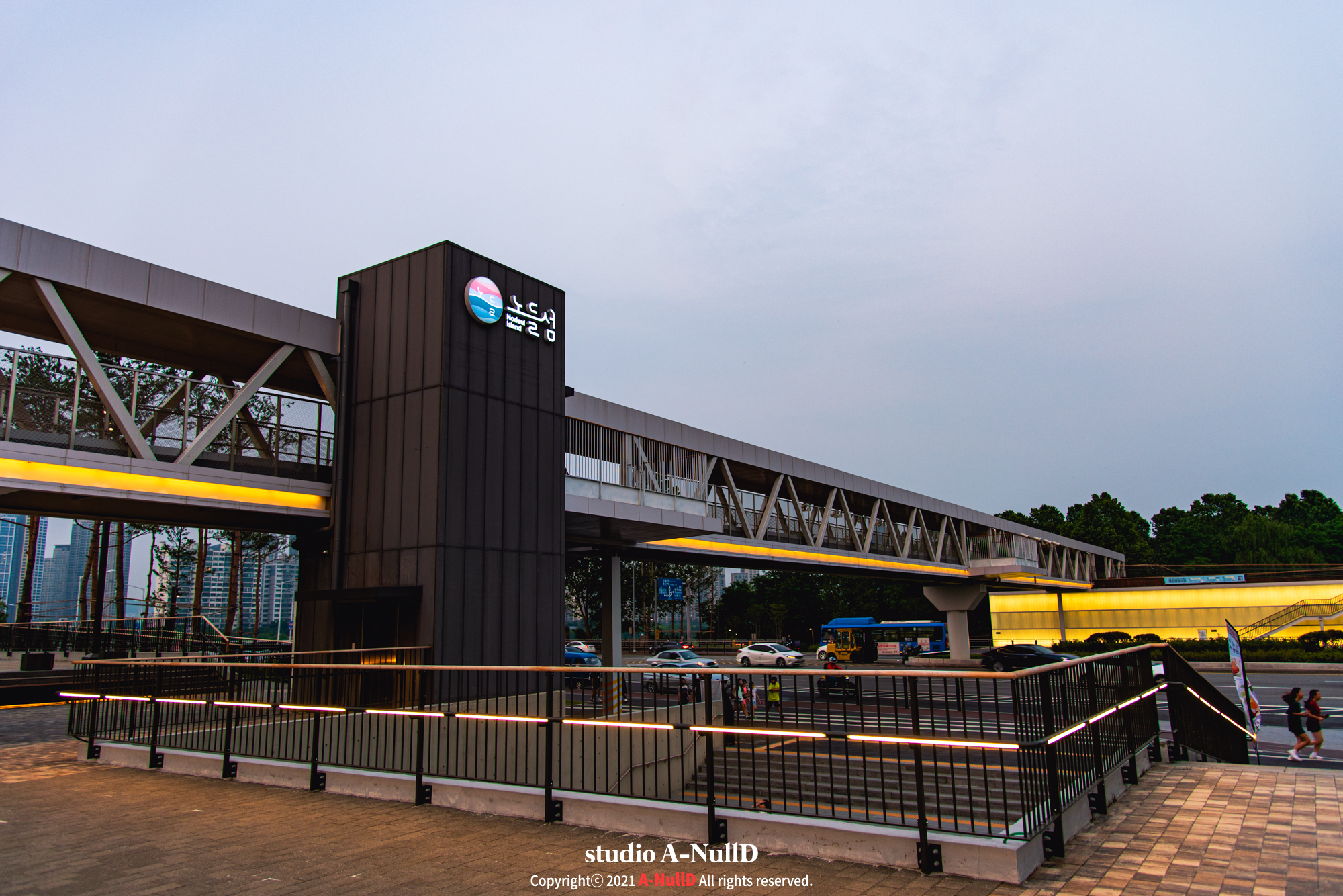 횡단 브릿지의 주야간 풍경.
