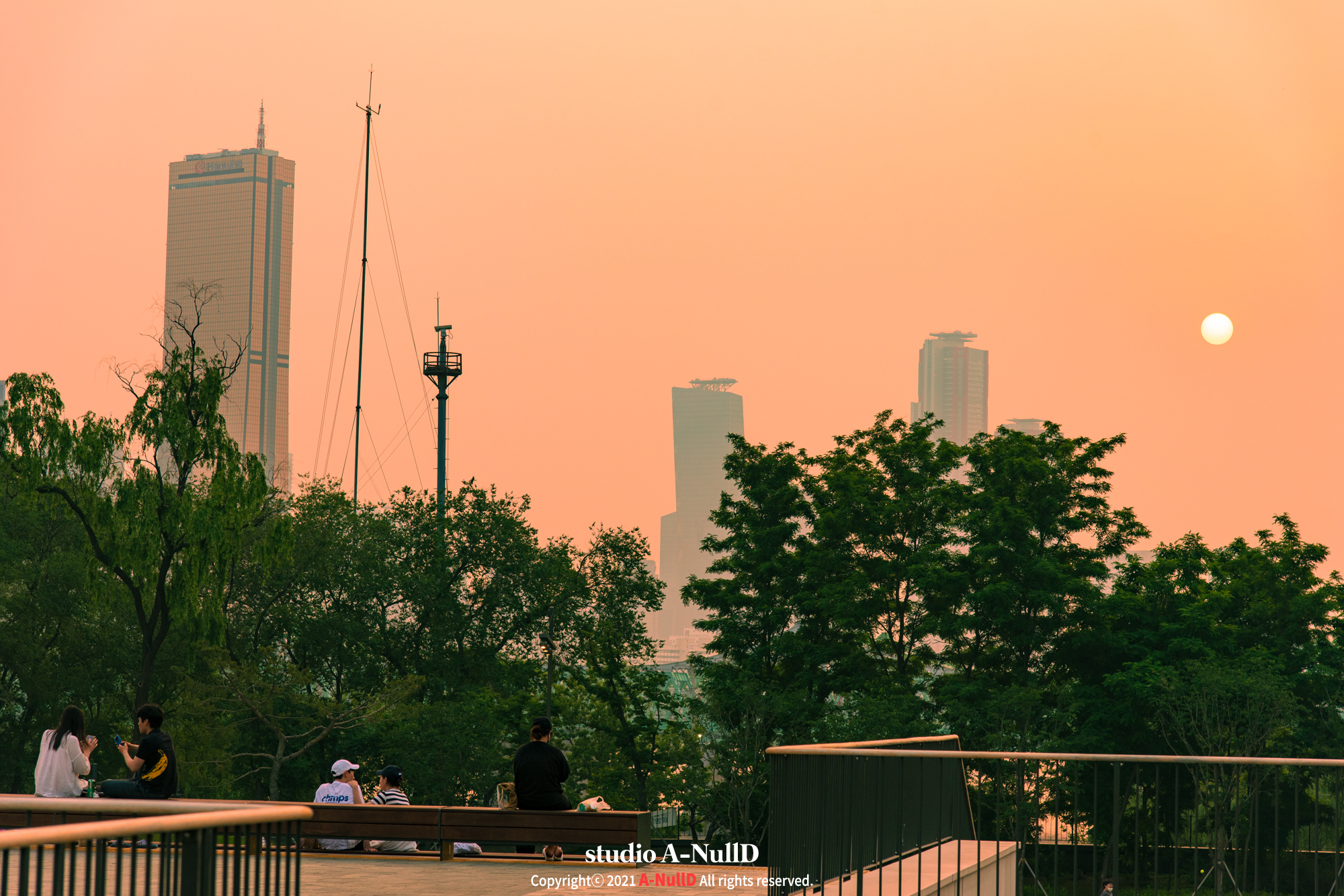 63빌딩이 보이며 해질녘의 풍경이 참 좋네요.