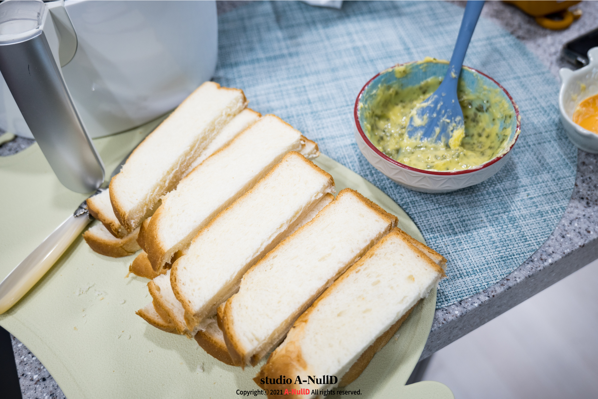 잘 바른 식빵을 에어프라이어에 넣는데...
