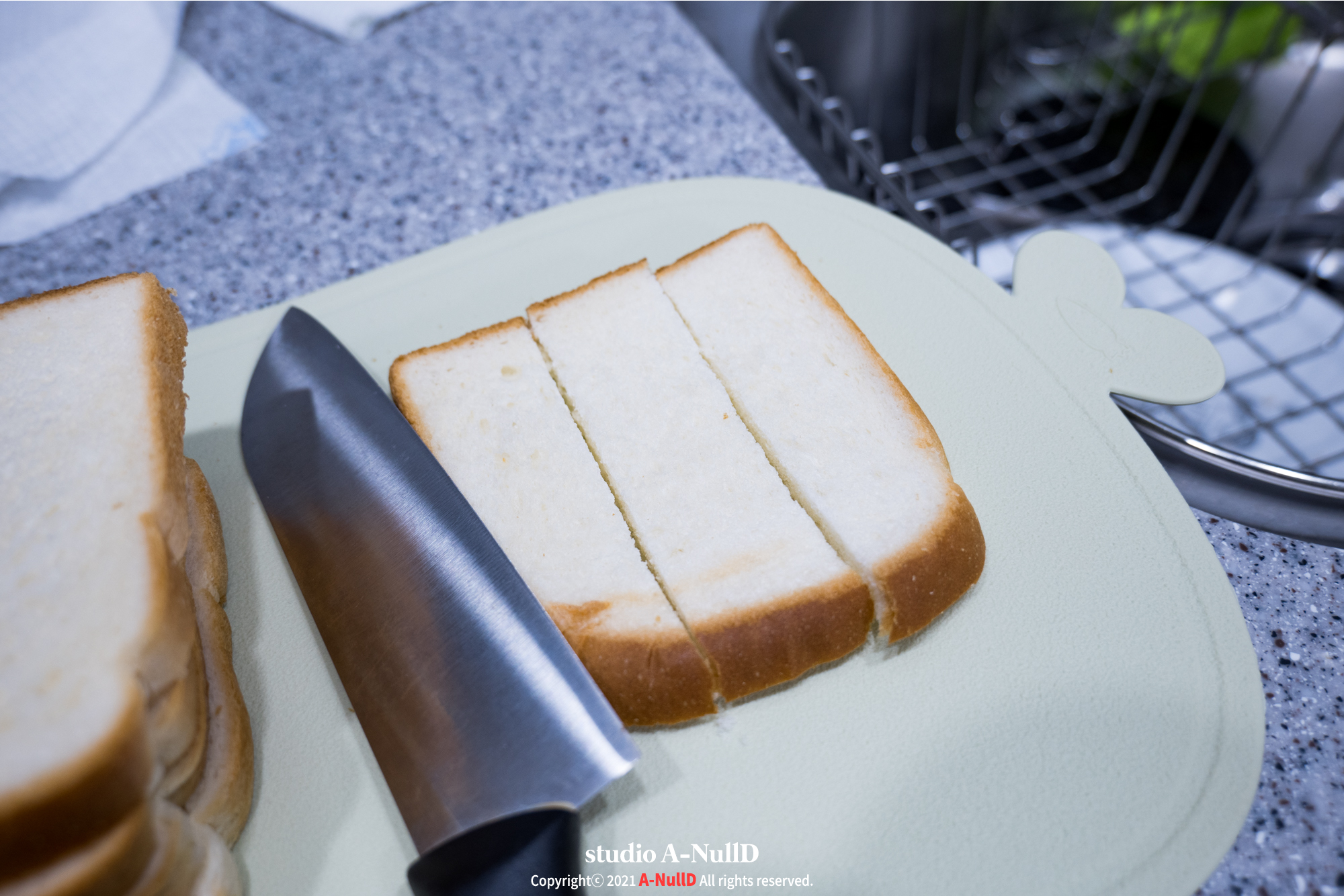 빵은 정해준 모양은 없으나 그냥 1/3 정도 썰었다.