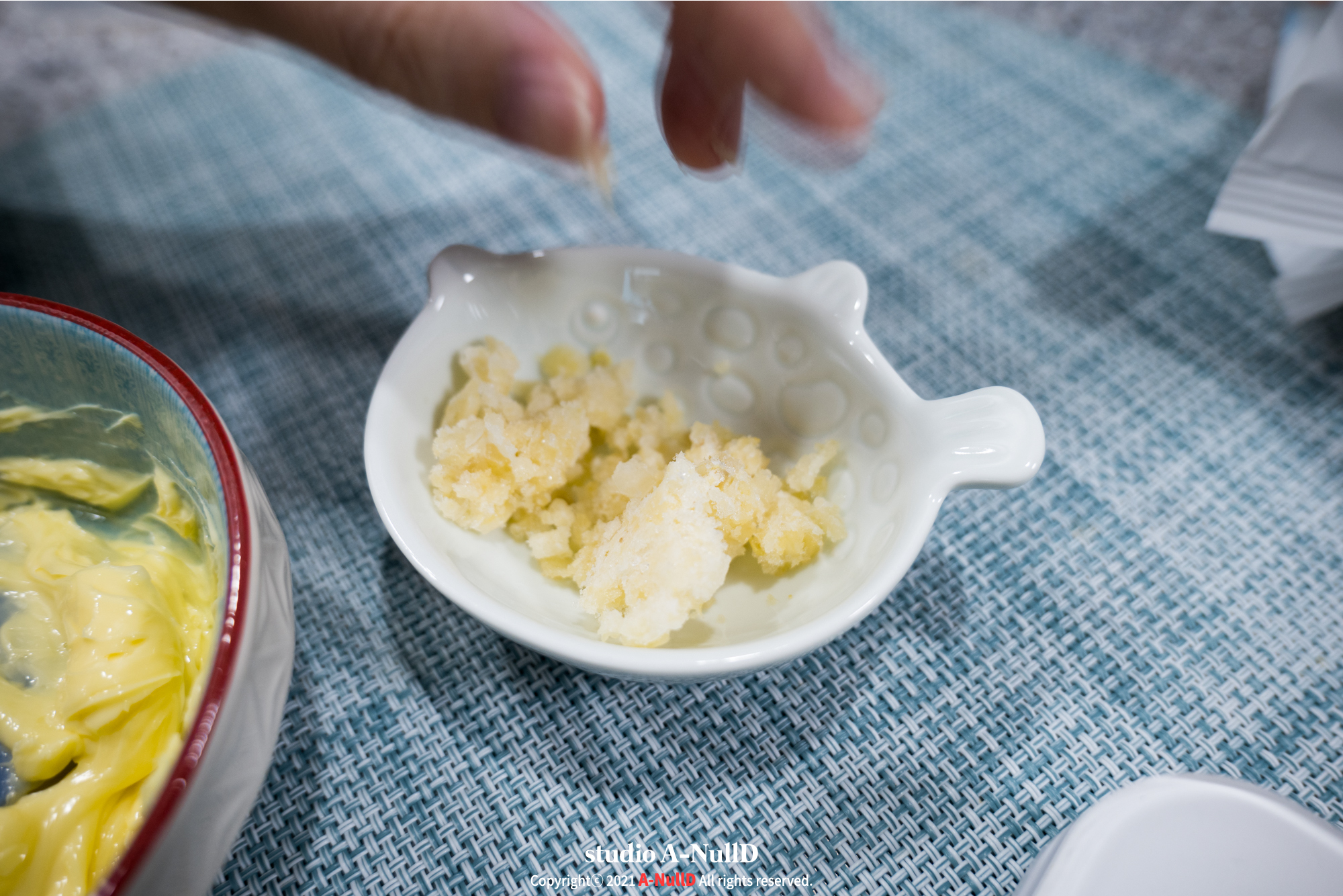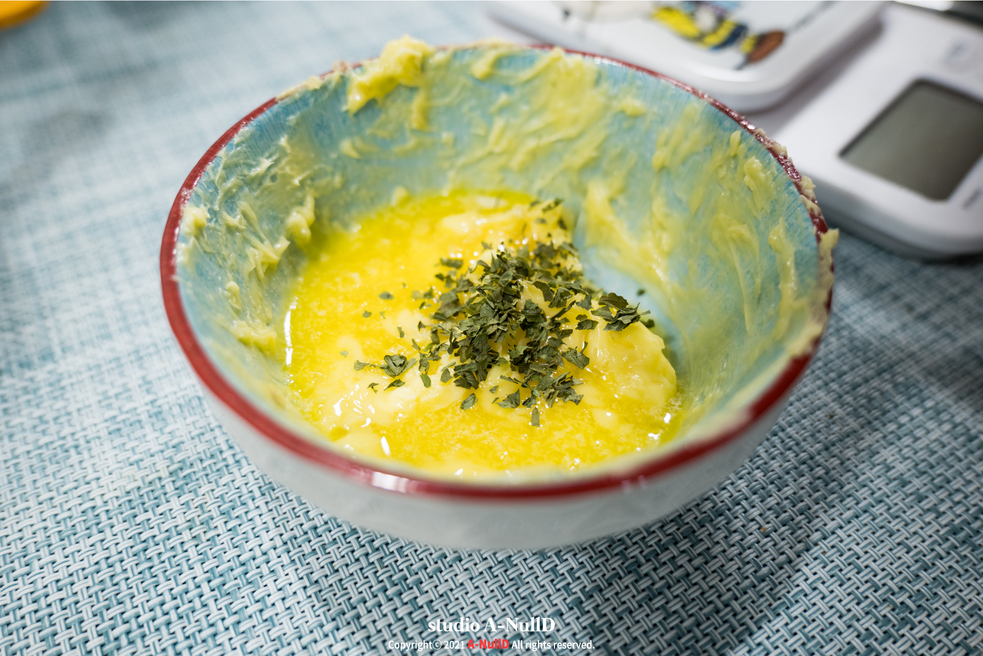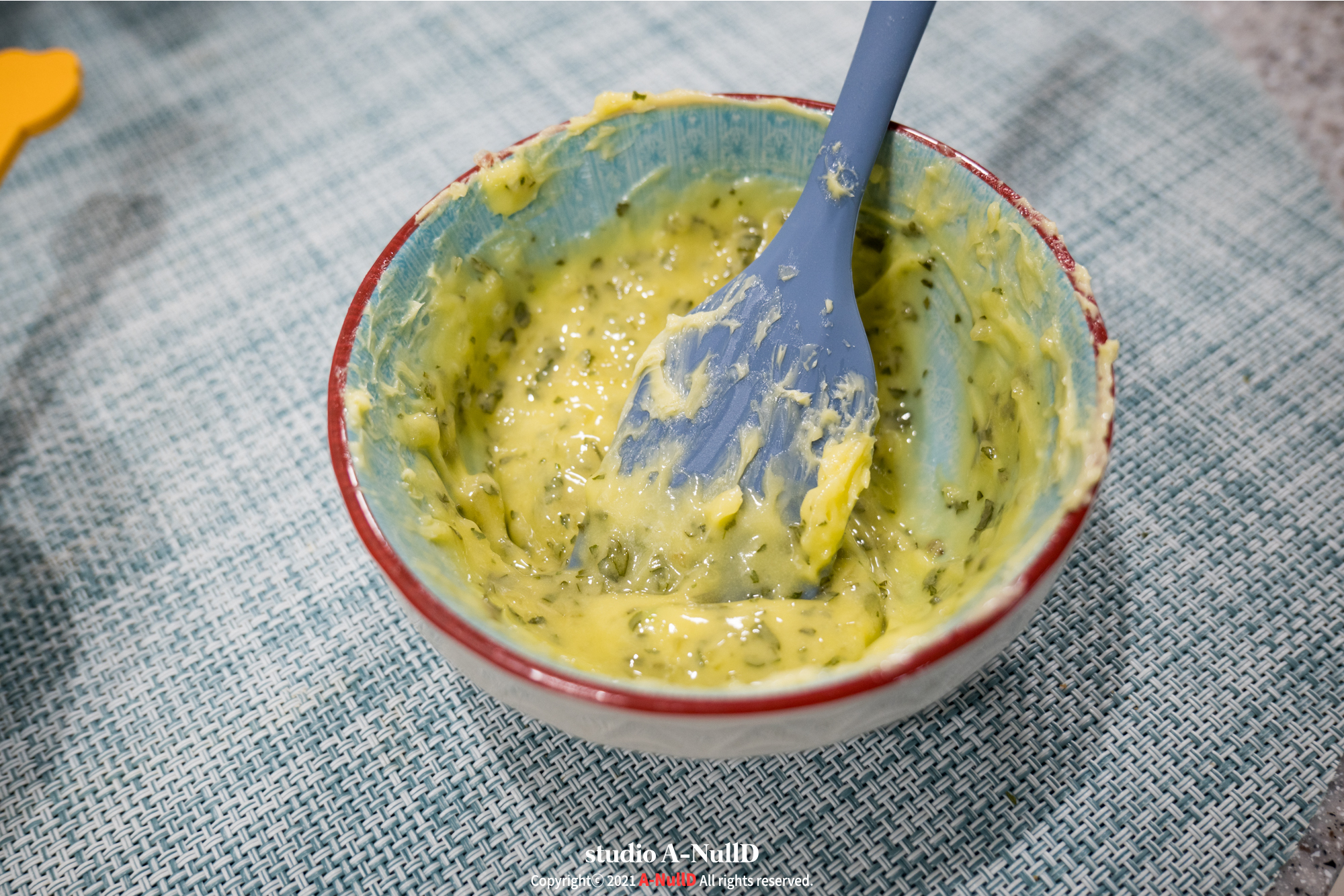 버터(가염 또는 무염), 마늘, 파슬리, 설탕, 소금(무염 버터일 경우), 올리고당, 식빵
