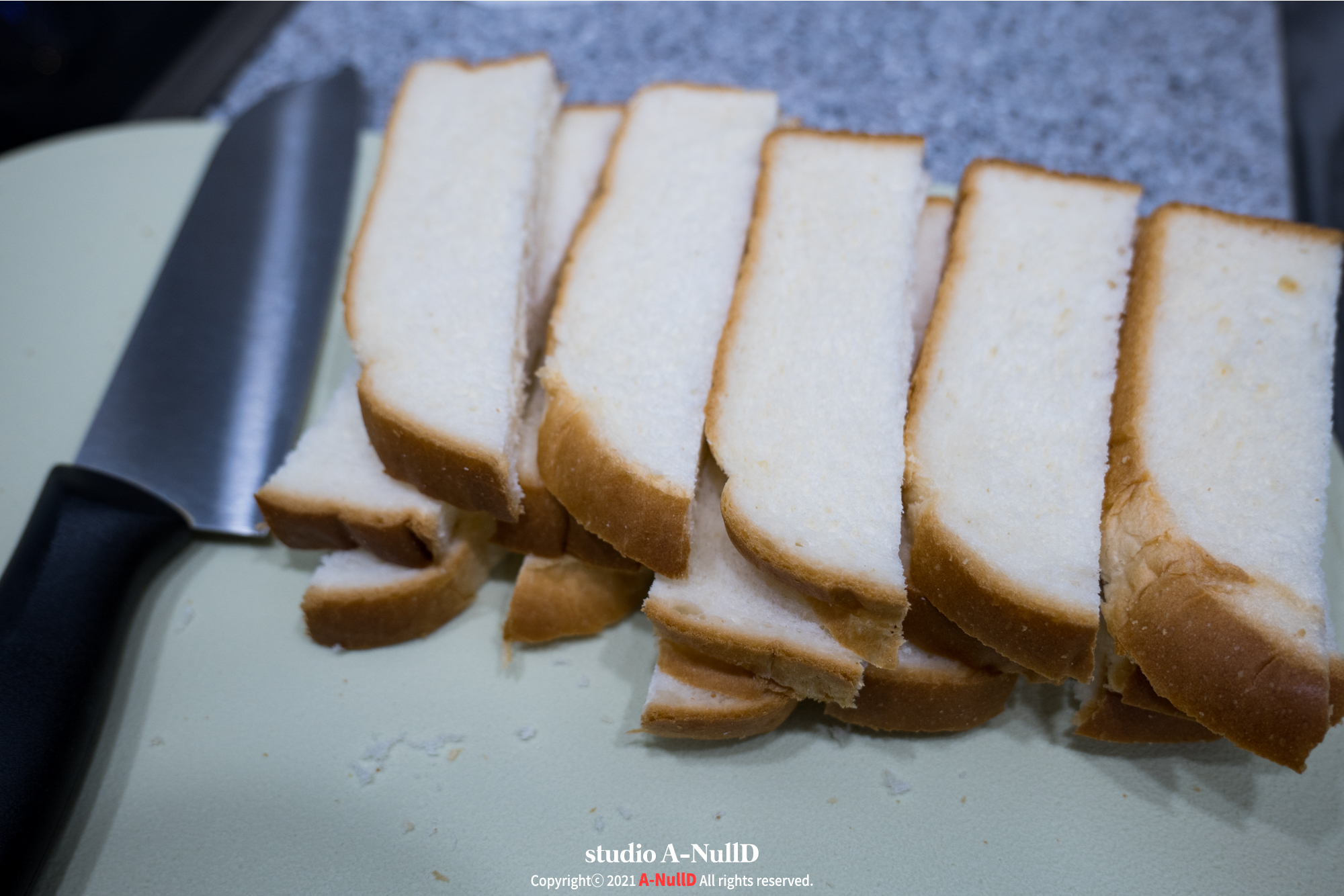 빵은 정해준 모양은 없으나 그냥 1/3 정도 썰었다.